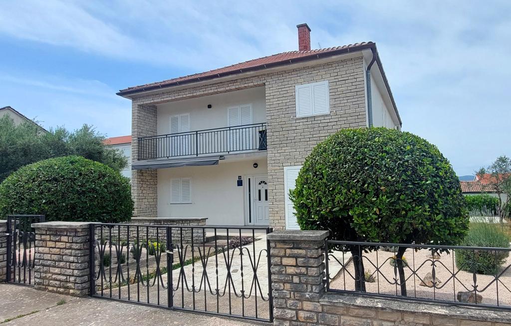 Nowo wyremontowany, klimatyzowany apartament znajduje się w domu wolnostojącym z dużym ogrodem, w spokojnej uliczce z domami rodzinnymi. Do lokalu mieszkalnego na pierwszym piętrze można dostać się osobnymi, zewnętrznymi schodami. Jest to jedyny apartament w budynku. Przed budynkiem znajduje się parking dla gości. Na powierzchni ponad 100 m2 znajdują się 4 sypialnie (3 pokoje z łóżkami podwójnymi i 1 pokój z 2 łóżkami pojedynczymi), salon z kuchnią, centralne wejście, dwie łazienki, duży taras i balkon. Salon z kuchnią i jadalnią oraz 1 sypialnia mają dostęp do tarasu z widokiem na morze, a 2 sypialnie mają dostęp do balkonu. W pełni wyposażona kuchnia zawiera wszystko, czego potrzebujesz do komfortowego pobytu, w tym zmywarkę, płytę ceramiczną, piekarnik, ekspres do kawy, lodówkę z zamrażarką, toster itp. Apartament jest wyposażony w pralkę, suszarkę do włosów i żelazko. Plaża Bošana 5 min. spacerem, a do centrum miasta jest 10 min.