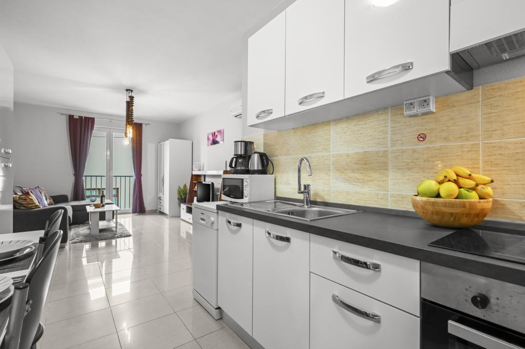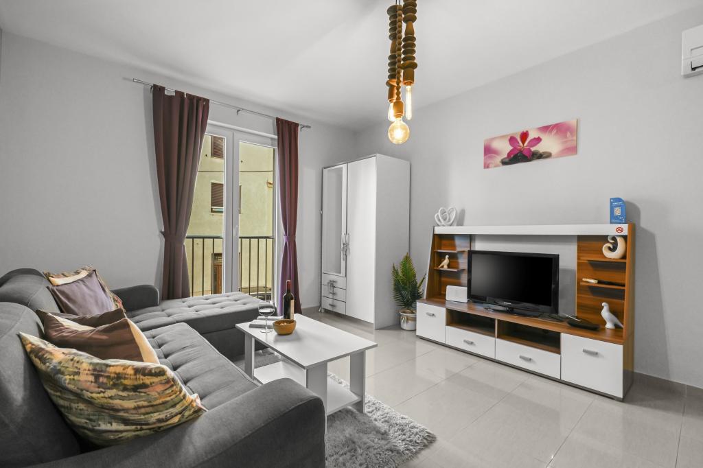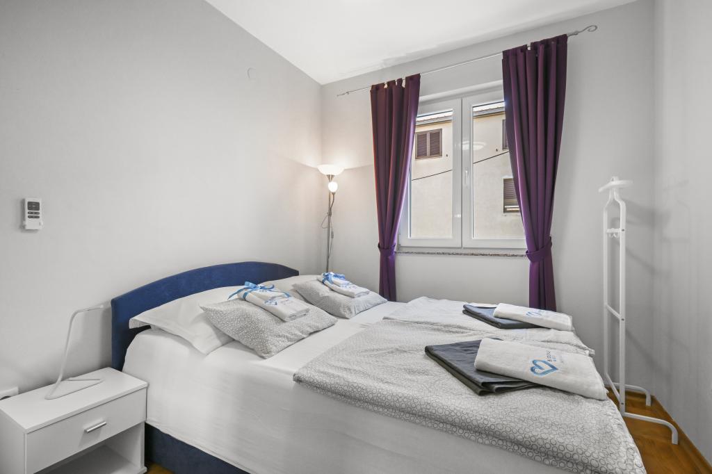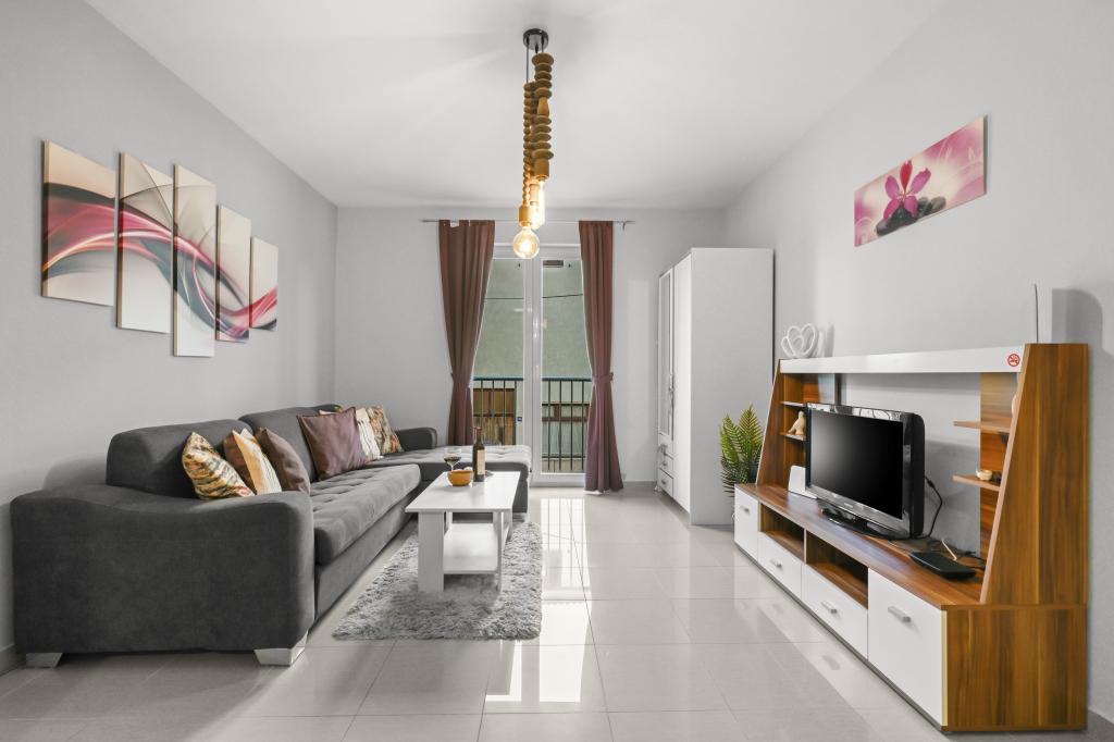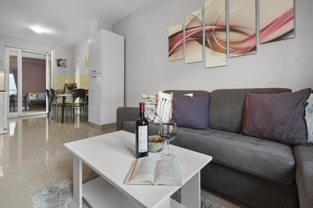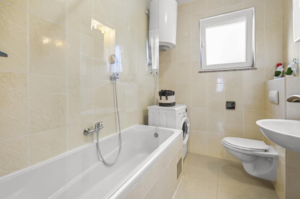 Apartament Majviva znajduje się w doskonałej lokalizacji w pięknym, małym, rodzinnym miasteczku Biograd na Moru. Jak sama nazwa wskazuje, z trzech stron otacza go morze i wspaniałe plaże. Apartament znajduje się w samym centrum, przy cichej uliczce, 150 m od plaży Dražice, wyróżnionej Błękitną Flagą za najpiękniejsze plaże Adriatyku. Apartament jest w pełni nowocześnie wyposażony i znajduje się na pierwszym piętrze niewielkiego budynku z zaledwie trzema apartamentami. Na dziedzińcu budynku znajduje się prywatny parking na jeden samochód oznaczony literą M (pierwsza litera nazwy apartamentu). Apartament posiada dwie sypialnie z podwójnymi łóżkami, salon z dużą, rozkładaną sofą narożną, która może służyć jako łóżko dla dwóch dodatkowych osób, dwie łazienki (jedna z wanną, druga z prysznicem), w pełni wyposażoną kuchnię (duża lodówka z zamrażarką, zmywarka, ekspres do kawy, czajnik, piekarnik itp.) oraz duży zadaszony taras. Idealna lokalizacja apartamentu zapewnia pełen relaks, ponieważ nie trzeba korzystać z samochodu przez cały pobyt.