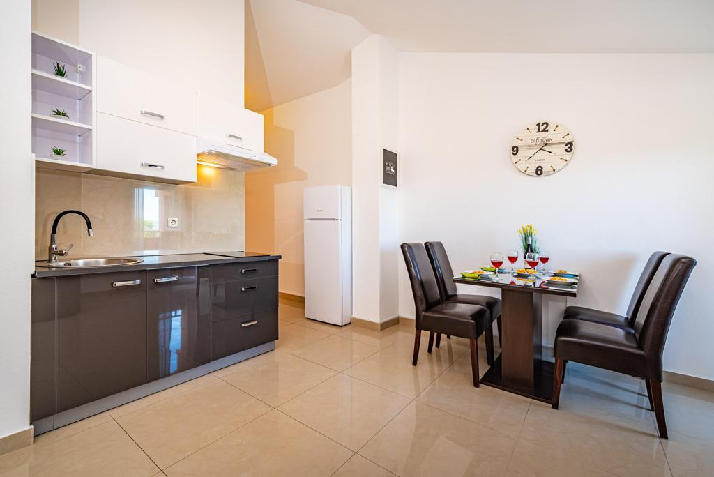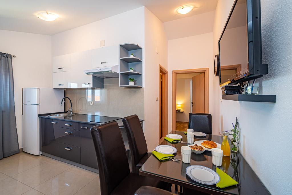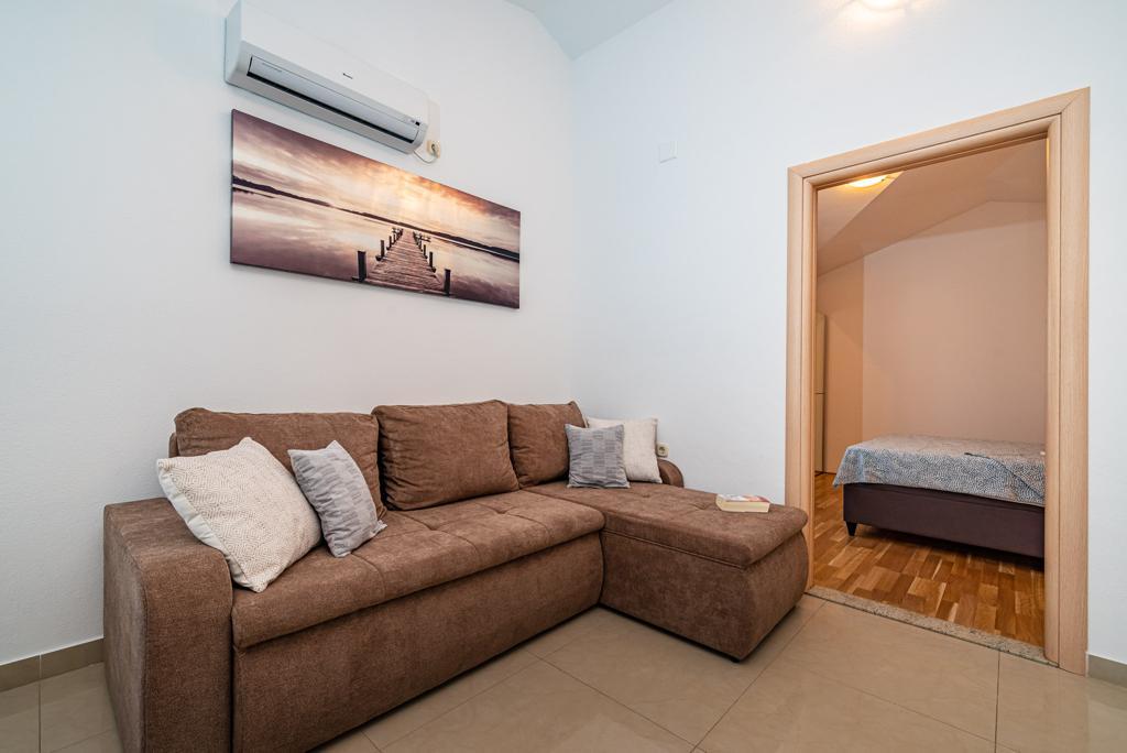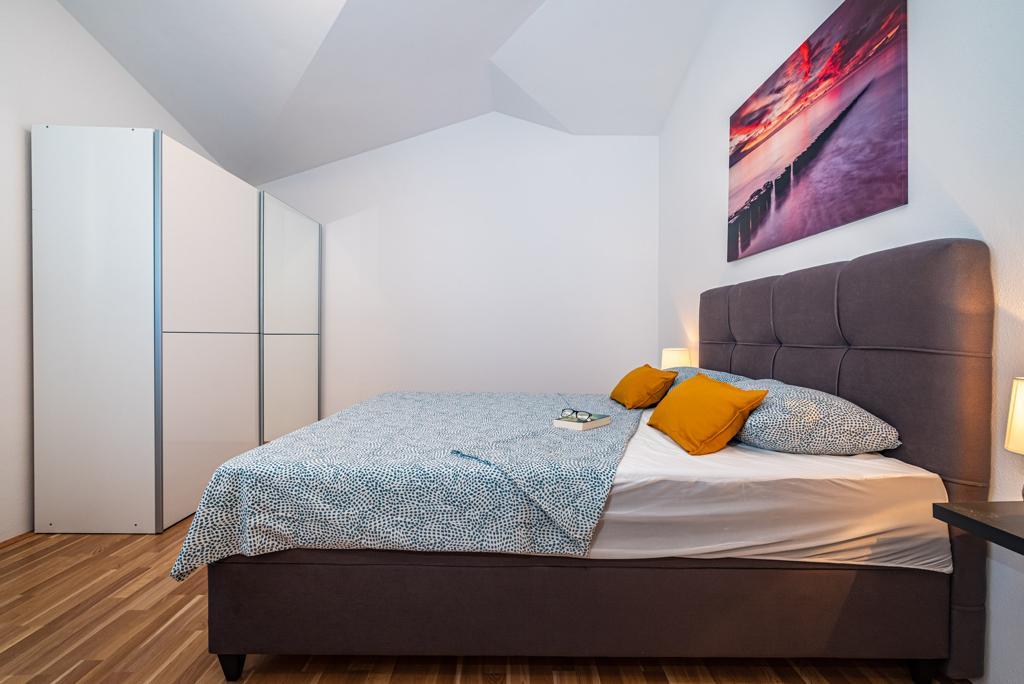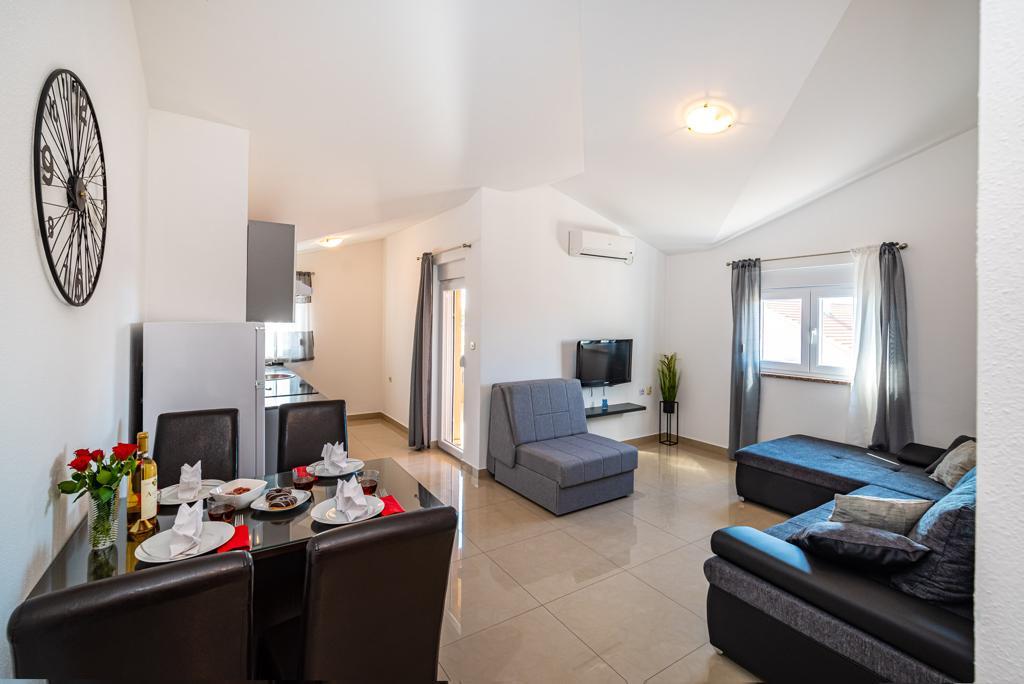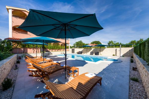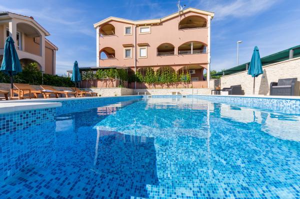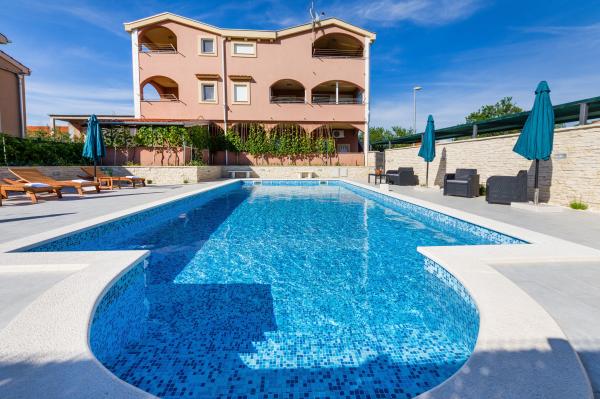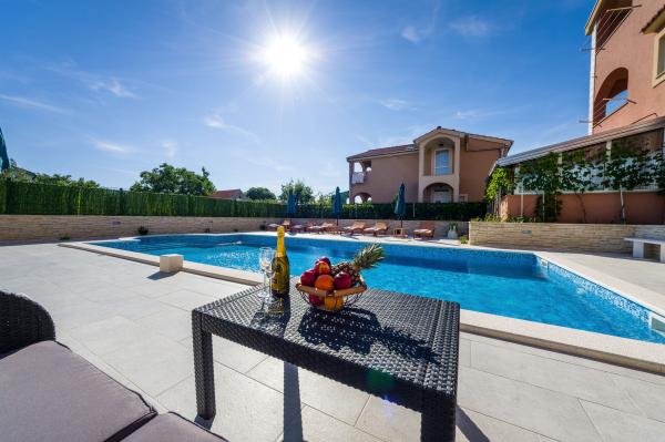 Wynajmę 5 jednopokojowych apartamentów z basenem, które znajdują się w spokojnej części Biogradu. Każdy apartament posiada w pełni wyposażoną kuchnię (z naczyniami), pokój z podwójnym łóżkiem (pościel), pokój dzienny z dużą rozkładaną sofą (dla dwóch osób), łóżeczko dziecięce, łóżko pojedyncze. (TV, satelita), WC, balkon, grill, parking, klimatyzacja. Basen (10 × 5 m) posiada pływanie w przeciwprądzie, hydromasaż i lodowe oświetlenie. Obiekt jest monitorowany, a apartamenty przeznaczone są wyłącznie na wakacje, ponieważ znajdują się w domu rodzinnym, więc nie są przeznaczone do zabawy i imprezowania. Każdy apartament może pomieścić 4-5 osób. Miasto jest idealne dla dzieci, młodszych i starszych ze względu na różnorodną ofertę rozrywkową.
