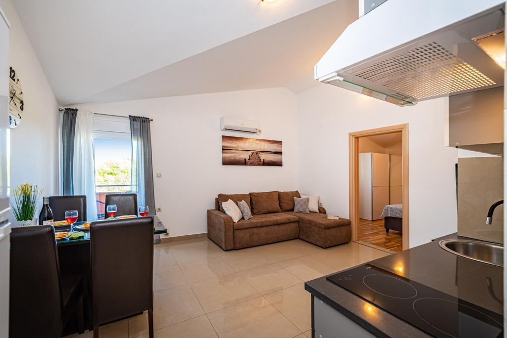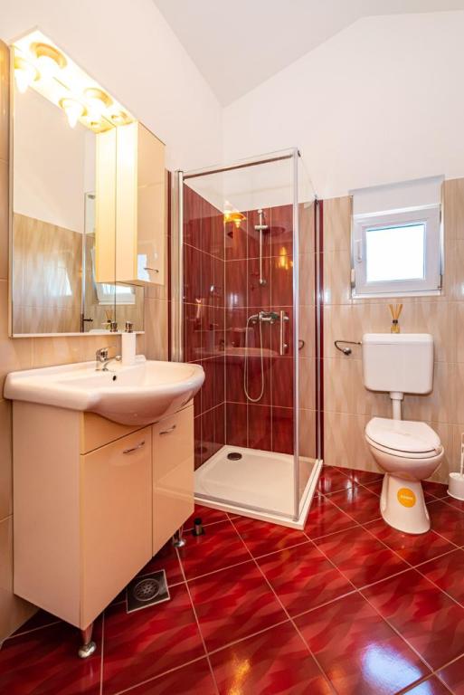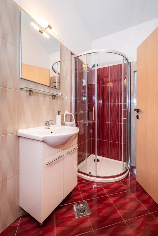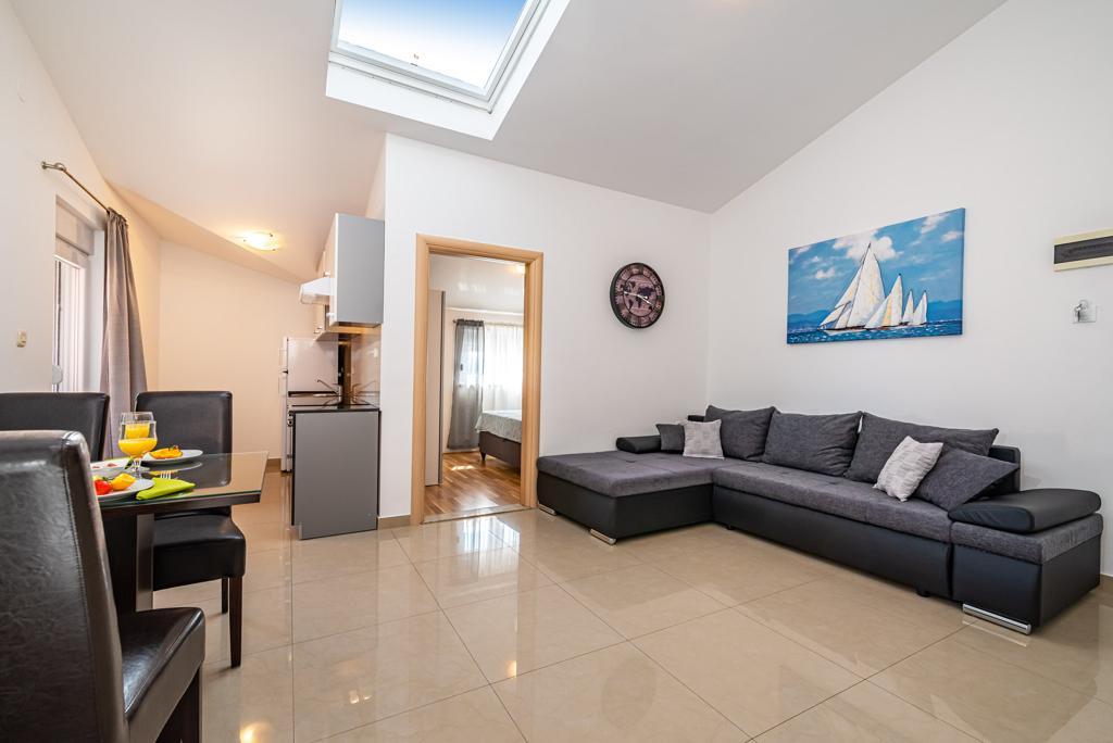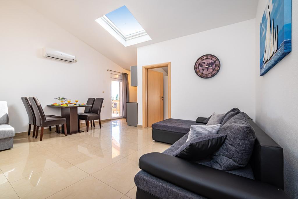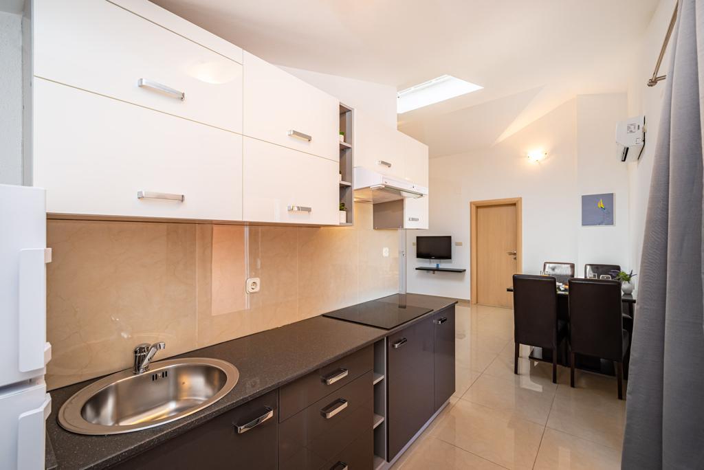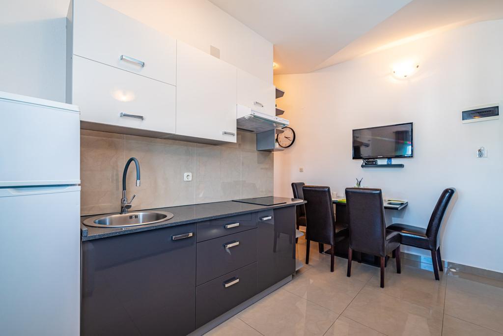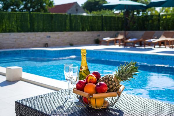Wynajmę 5 jednopokojowych apartamentów z basenem, które znajdują się w spokojnej części Biogradu. Każdy apartament posiada w pełni wyposażoną kuchnię (z naczyniami), pokój z podwójnym łóżkiem (pościel), pokój dzienny z dużą rozkładaną sofą (dla dwóch osób), łóżeczko dziecięce, łóżko pojedyncze. (TV, satelita), WC, balkon, grill, parking, klimatyzacja. Basen (10 × 5 m) posiada pływanie w przeciwprądzie, hydromasaż i lodowe oświetlenie. Obiekt jest monitorowany, a apartamenty przeznaczone są wyłącznie na wakacje, ponieważ znajdują się w domu rodzinnym, więc nie są przeznaczone do zabawy i imprezowania. Każdy apartament może pomieścić 4-5 osób. Miasto jest idealne dla dzieci, młodszych i starszych ze względu na różnorodną ofertę rozrywkową.