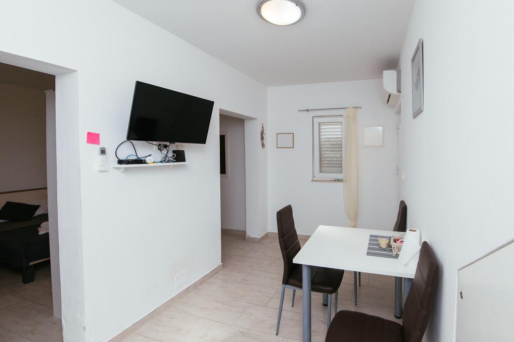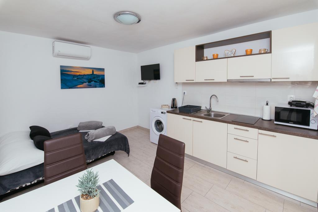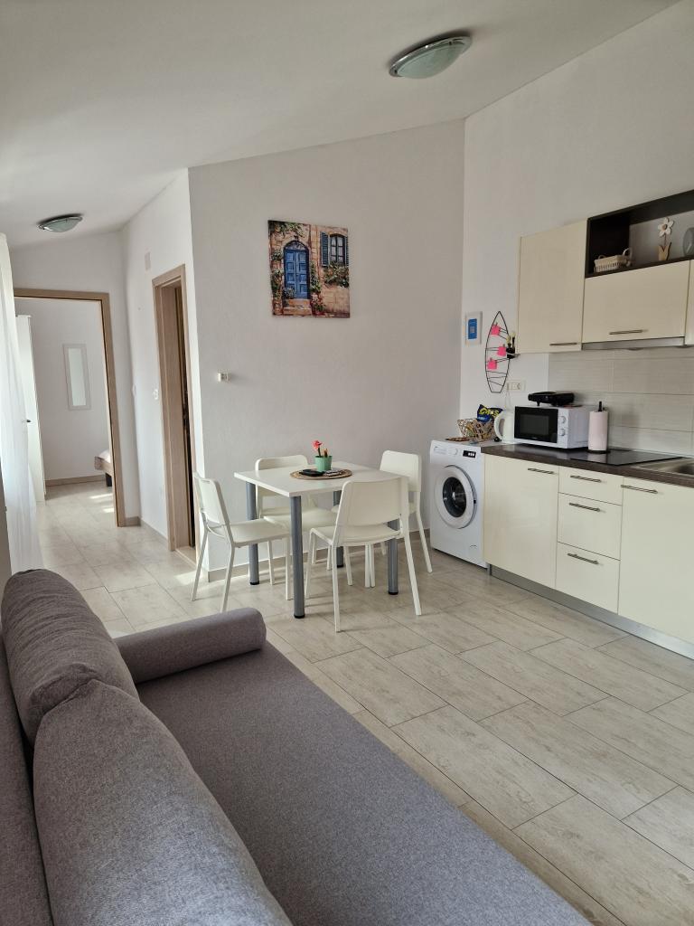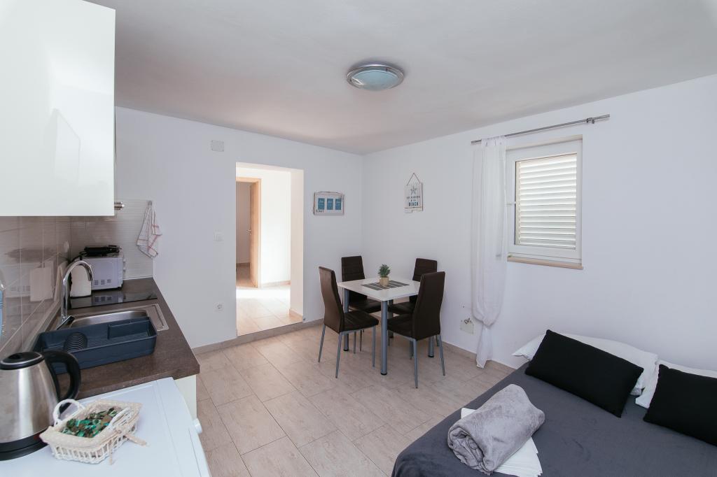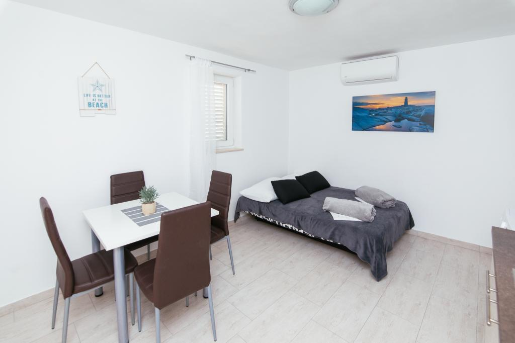 Apartamenty AE znajdują się w Biogradzie na moru, przy ulicy Splitska 37a. Apartamenty znajdują się 700 metrów od plaży Dražice (maksymalnie 7 minut spacerem), a centrum miasta oddalone jest o 500 metrów. Sklep znajduje się 20 metrów od apartamentu. Apartament posiada jedną sypialnię, rozkładaną sofę, kuchnię, łazienkę, jadalnię i duży wspólny taras. Do dyspozycji Gości jest bezpłatny parking, klimatyzacja, Wi-Fi, pralka i grill.