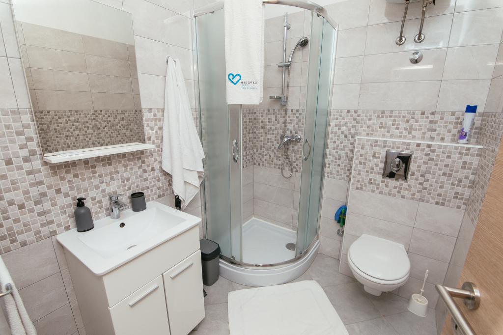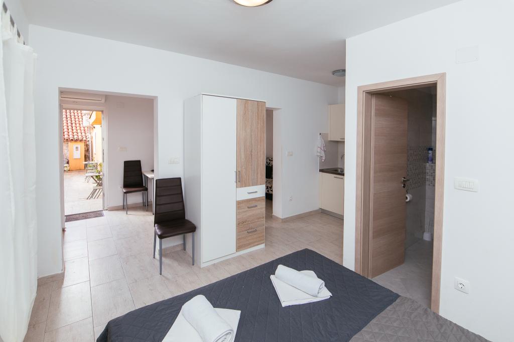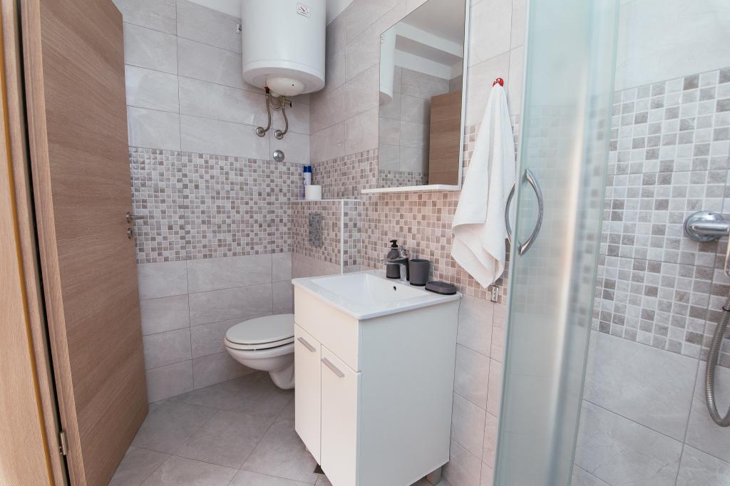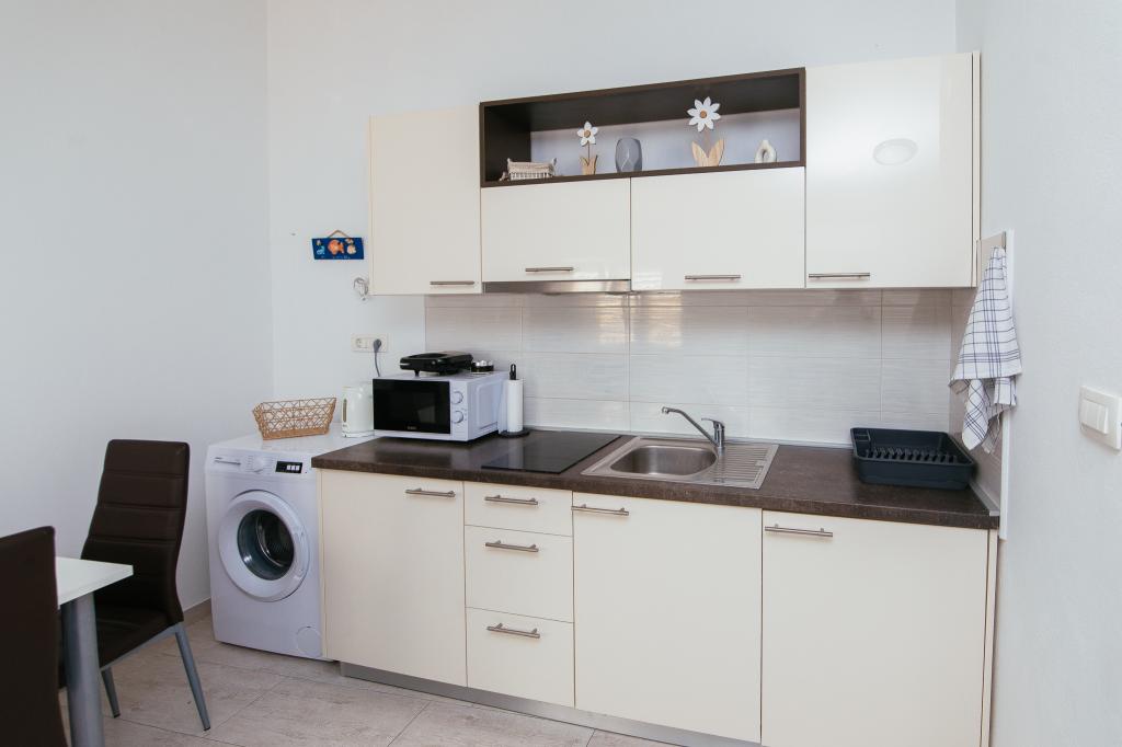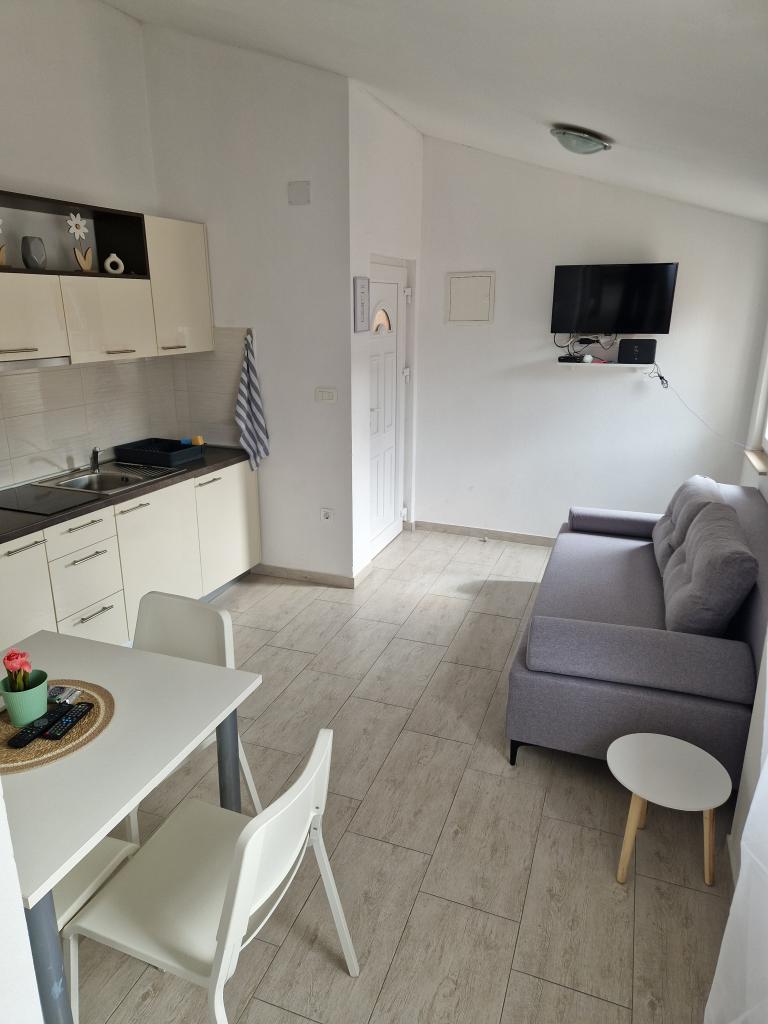 Apartamenty AE znajdują się w Biogradzie na moru, przy ulicy Splitska 37a. Apartamenty znajdują się 700 metrów od plaży Dražice (maksymalnie 7 minut spacerem), a centrum miasta oddalone jest o 500 metrów. Sklep znajduje się 20 metrów od apartamentu. Apartament posiada jedną sypialnię, rozkładaną sofę, kuchnię, łazienkę, jadalnię i duży wspólny taras. Do dyspozycji Gości jest bezpłatny parking, klimatyzacja, Wi-Fi, pralka i grill.