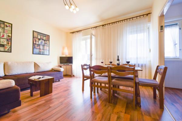 CALA Apartamenty znajdują się w centrum Biograd n / m, 120 metrów od najpiękniejszych plaż i centrum miasta, które znajduje się wiele restauracji, kawiarni i rozrywki. Chociaż znajduje się w centrum, apartamenty znajdują się w cichej okolicy, idealne do odpoczynku i relaksu. Znajduje się tylko kilka minut spacerem od mieszkania sklep spożywczy, market, kilka placówek bankowych, adres biura, dworca autobusowego, kilka kosmetycznych i salon fryzjerski, centrum odnowy biologicznej, kino na wolnym powietrzu i park rozrywki dla dzieci. Pomimo tętniącej życiem atmosfery centrum miasta, można zrelaksować się w apartamentach spokój i prywatność Cala. Wszystkie apartamenty wyposażone są w klimatyzację i bezprzewodowy dostęp do internetu, telewizor, czajnik elektryczny, lodówka z zamrażarką, a także pościel i ręczniki. A jeśli zarezerwować z wyprzedzeniem, możesz skorzystać z użyciem wspólny taras z grillem. UGOST przyjaciół i rodziny, a także w swoim własnym domu. Apartamenty w ostatnich latach całkowicie odnowiony.