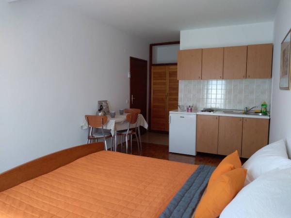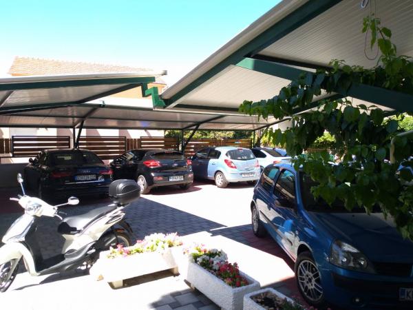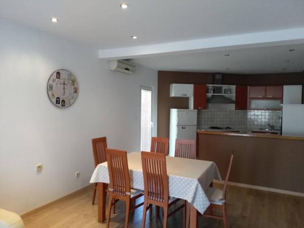 Apartamenty położone są w rodzinnym domu w cichej części centrum miasta. Korzystanie z samochodu nie jest konieczne, ponieważ wszystkie urządzenia dostępne są tylko kilka minut spacerem (bary, restauracje, sklepy, dyskoteki, itp) i ładna plaża łechtaczki zwycięzca Blue Flag (jakość usług, czystość i sprzętu wodnego) i piaszczystej zatoce plaży, która plaże położone są w pobliżu gęstym sosnowym lesie i szedł we wszystkie niezbędne udogodnienia. Wszystkie aprtmani posiada parking.
