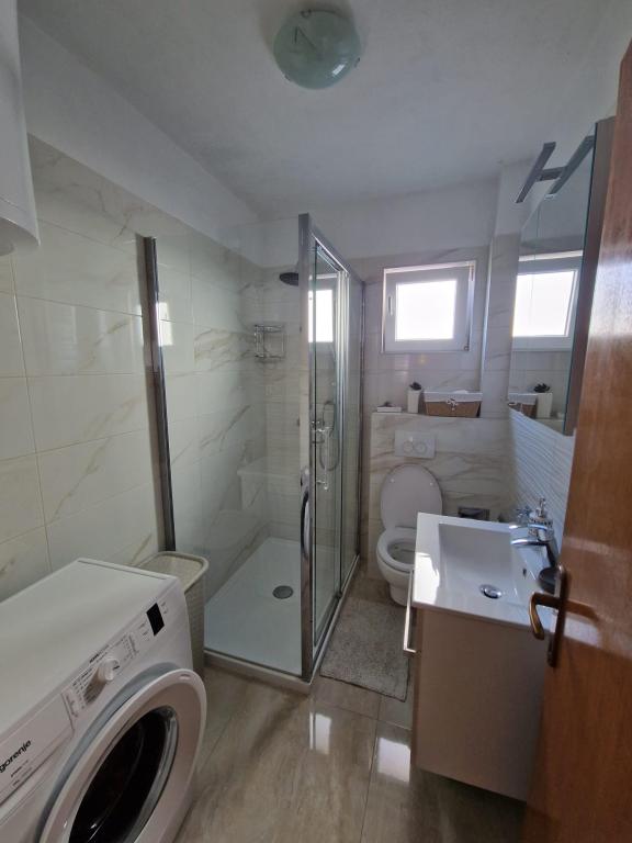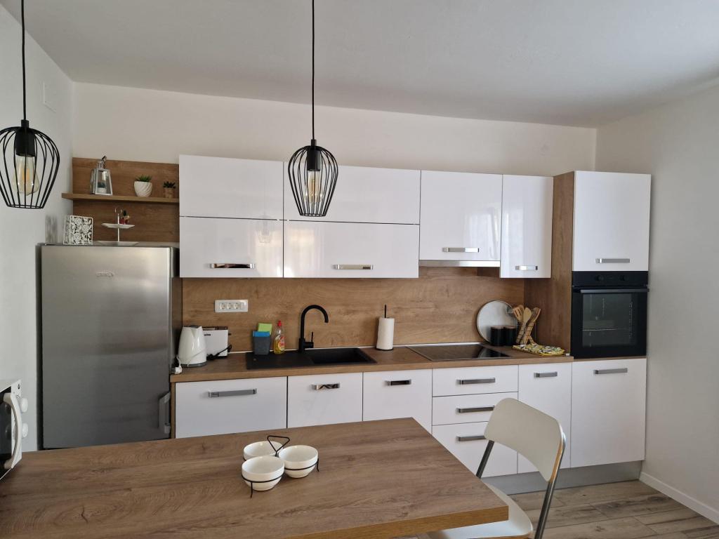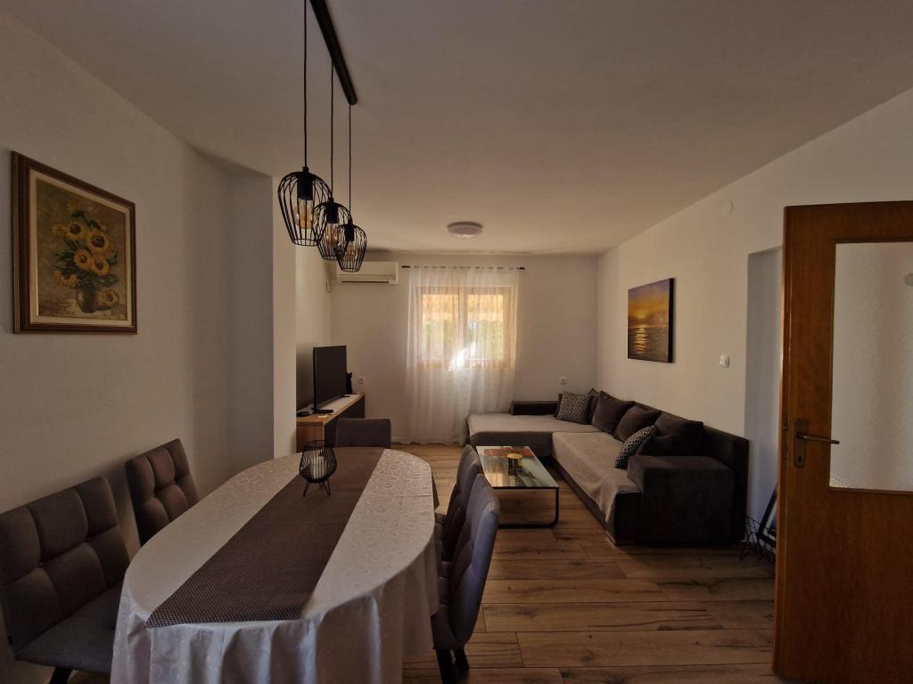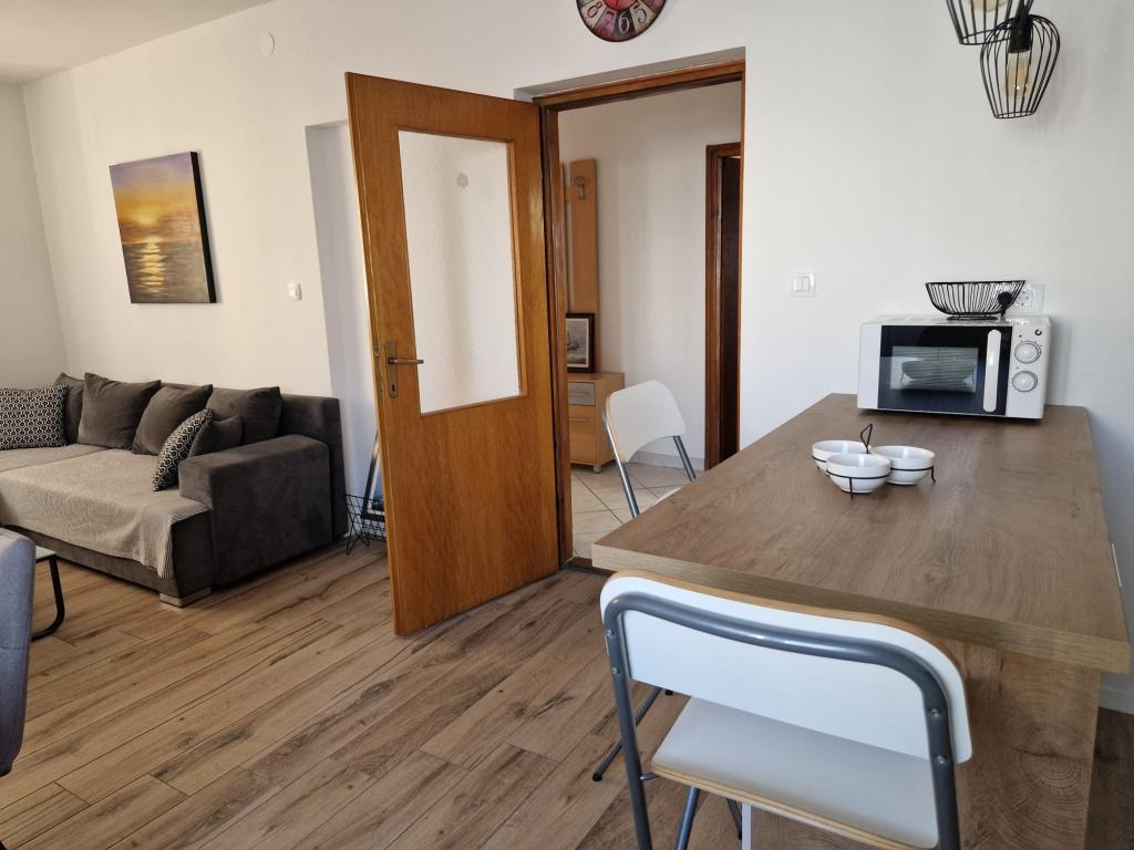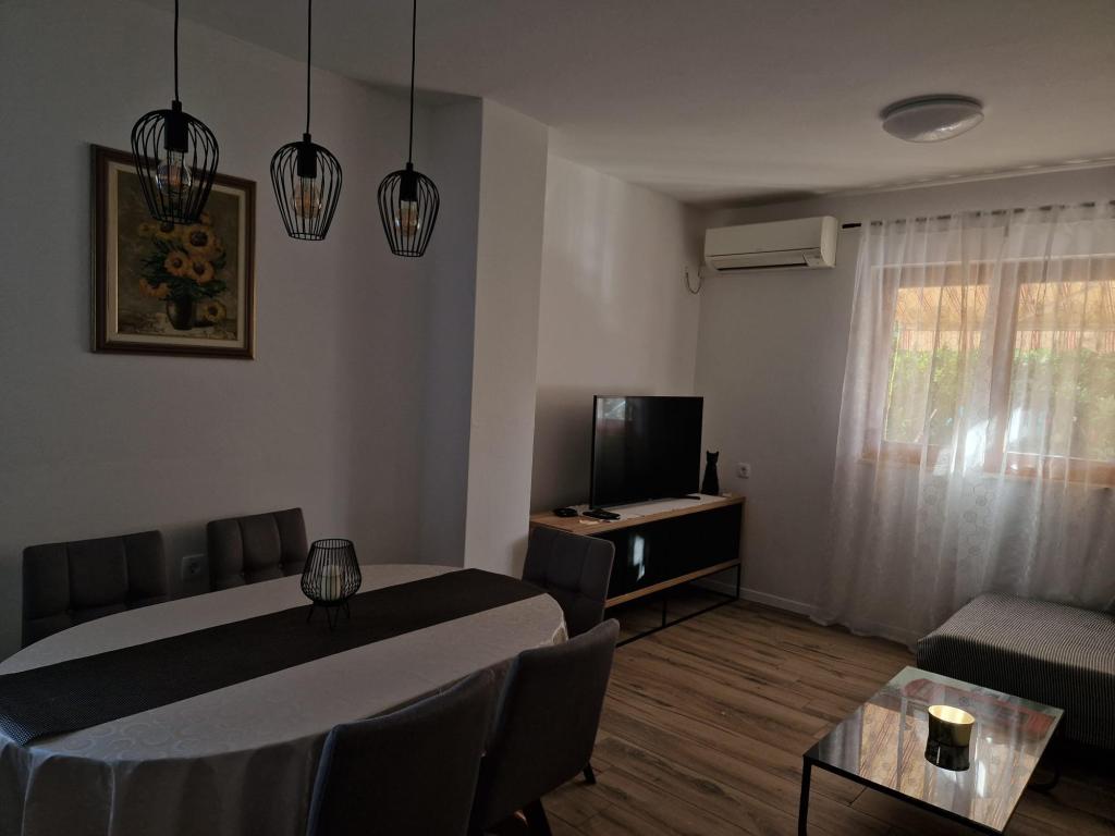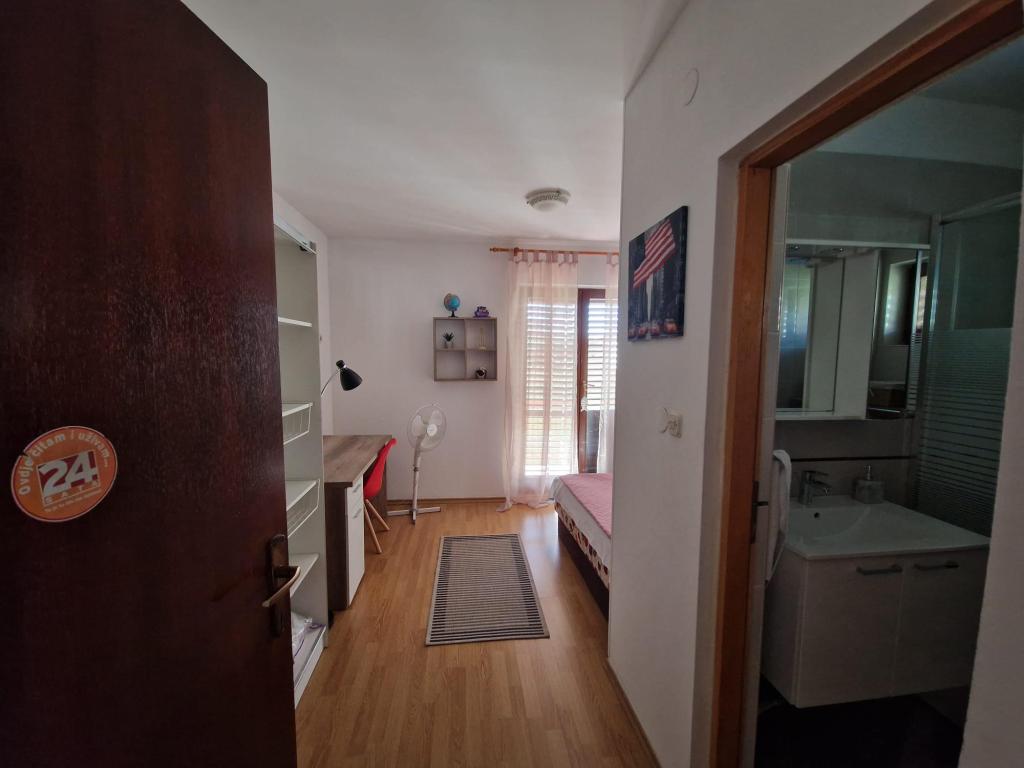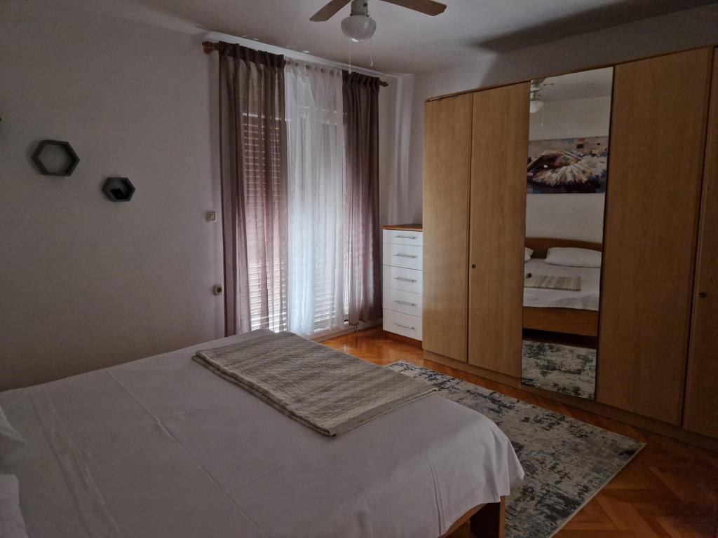 Wynajmujemy trzypokojowe mieszkanie w Biogradzie na Moru. Mieszkanie składa się z: dwóch sypialni, dwóch łazienek z prysznicami, dwóch balkonów (po jednym w każdym pokoju) oraz dużego balkonu przed wejściem do mieszkania, salonu z dużą rozkładaną sofą, nowej i nowocześnie wyposażonej kuchni oraz korytarz. Jeśli chodzi o sprzęt AGD, mieszkanie wyposażone jest w pralkę w razie potrzeby, cały sprzęt kuchenny i nową lodówkę, w salonie telewizor plazmowy z programami zagranicznymi i inne. W mieszkaniu znajdują się trzy klimatyzatory, a każdy pokój wyposażony jest we własny klimatyzator, który ułatwia znoszenie wysokich temperatur. Mieszkanie znajduje się 5 minut od plaży, w centrum miasta ze wszystkimi niezbędnymi udogodnieniami w pobliżu (sklepy, ośrodek zdrowia, dworzec, parki miejskie itp.). Miejsca parkingowe dostępne są również na podwórzu przed apartamentem.
