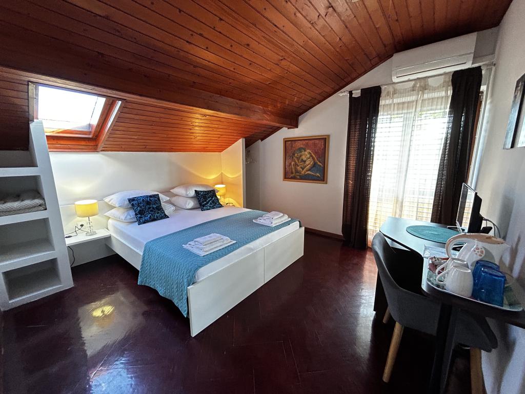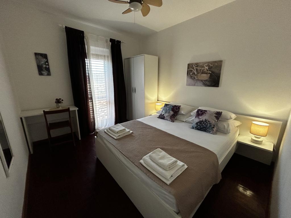 Nieruchomość położona jest w spokojnej części Biogradu, 5 minut spacerem od centrum i pięknych plaż (niebieska flaga).Otacza ją przestronny ogród pełen zieleni, idealny do zabaw dla dzieci itp.).