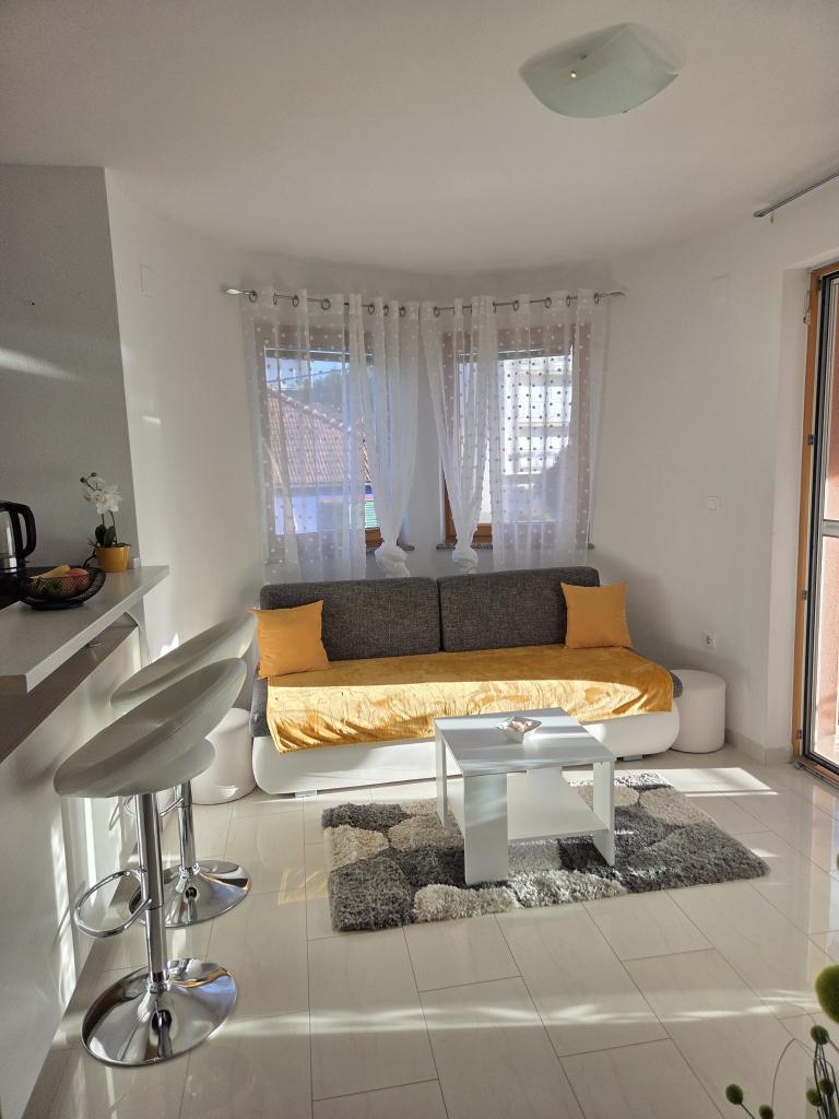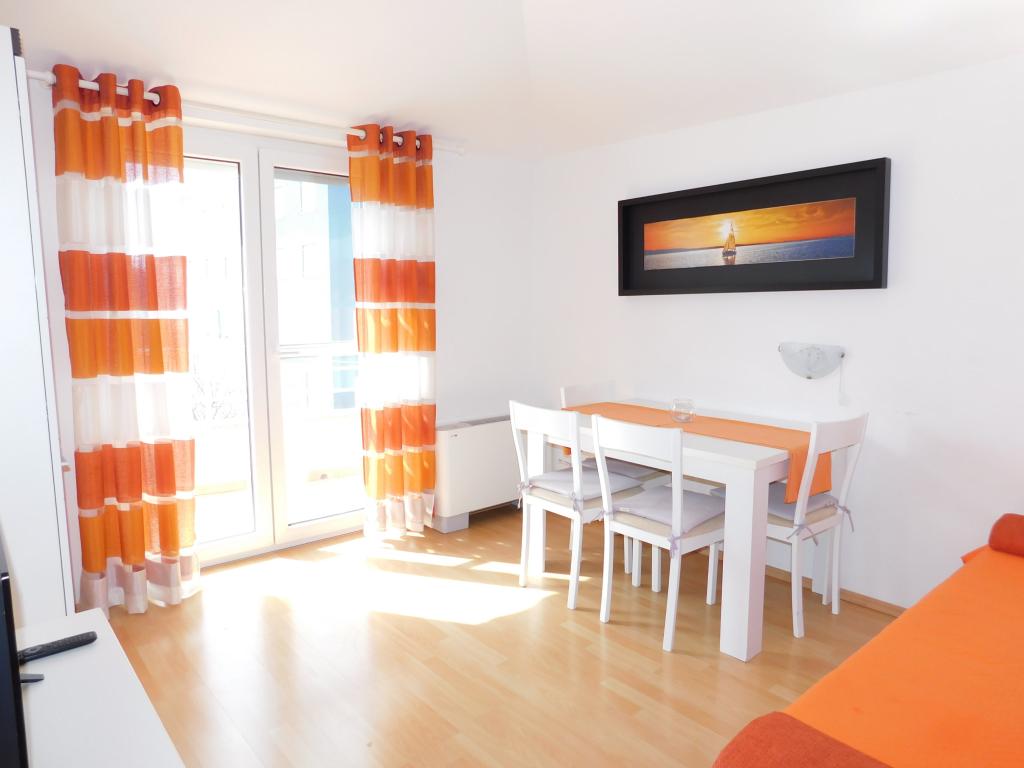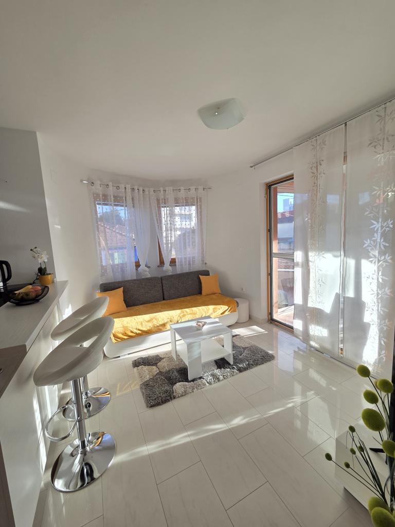 Mieszkaliśmy w zielonym mieszkaniu dla 4 osób. Mieszkanie ładne, nowoczesne, świetna lokalizacja, ale za cenę 120 € oczekiwaliśmy czegoś więcej. Brakuje drobiazgów, które są ważne i sprawiają, że goście wracają lub nie wracają. Za podaną cenę spodziewaliśmy się co najmniej zestawu 6 szklanek, 6 talerzy, łyżek i innych sztućców. Podobnie jak w innych mieszkaniach, w których nocowaliśmy w kuchni, powinien być proszek do mycia naczyń, odrobina cukru, sól, ewentualnie przyprawy, trochę oleju, octu i innych potrzebnych rzeczy, które wystarczy na pierwszą chwilę. W niektórych innych apartamentach Goście witani są miską owoców lub butelką wina. Na tarasie znajduje się również parasol i wygodne krzesła. Dlatego taras nie nadaje się do użytku. W salonie jest piękna kanapa, ale jest dość niewygodna, podobnie jak łóżko w pokoju dziecięcym. Telewizja ma tylko kilka podstawowych programów telewizyjnych. W sumie ładne mieszkanie, miły gospodarz, ale nie ma dodatkowej usługi, która uzasadniałaby tak wysoką cenę.
