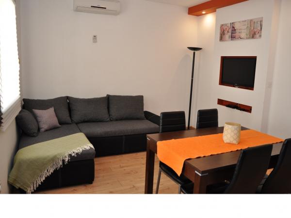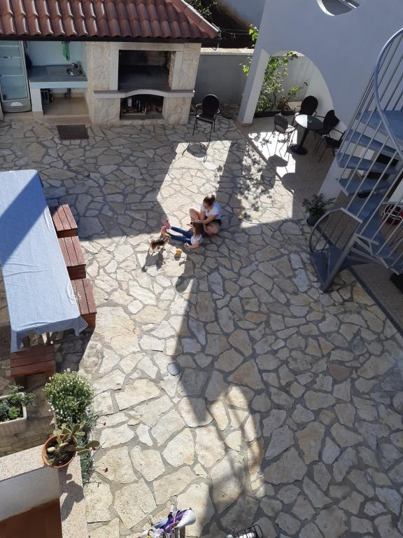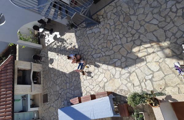 Apartamenty znajdują się w spokojnej części miasta, w odległości 5 minut spacerem do najbliższej plaży, przystani, restauracji, sklepów. dziedziniec i taras urządzone dla dzieci plac zabaw, kuchnia na zewnątrz / grill. Są prosto urządzone, z klimatyzacją, TV / SAT, W-FI, parter są odpowiednie dla mniejszych dzieci i przejezdne dla osób niepełnosprawnych (bez progów).