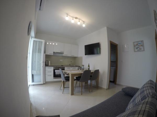 Apartamenty Maslina znajdują się w spokojnej części miasta, około 10 minut spacerem do najbliższej plaży Soline. Dom posiada 4 apartamenty, 3 x 40 m2 z balkonami i tarasami, 1 x 45 m2 z balkonem. Wszystkie apartamenty wyposażone są w klimatyzację, darmową sieć WIFI, telewizję satelitarną / TV, miejsce parkingowe i grill na podwórku oraz udogodnienia odpowiednie dla małych dzieci. W przypadku większych rodzin można od razu wynająć więcej wolnych mieszkań, a dla mniejszej liczby osób cena jest korzystniejsza.