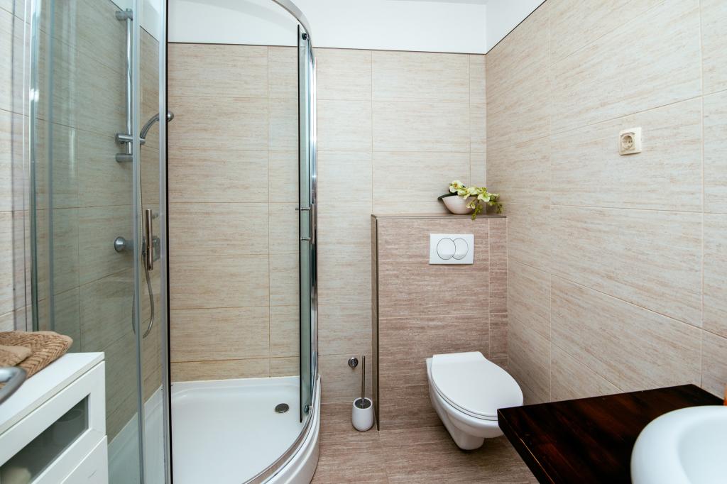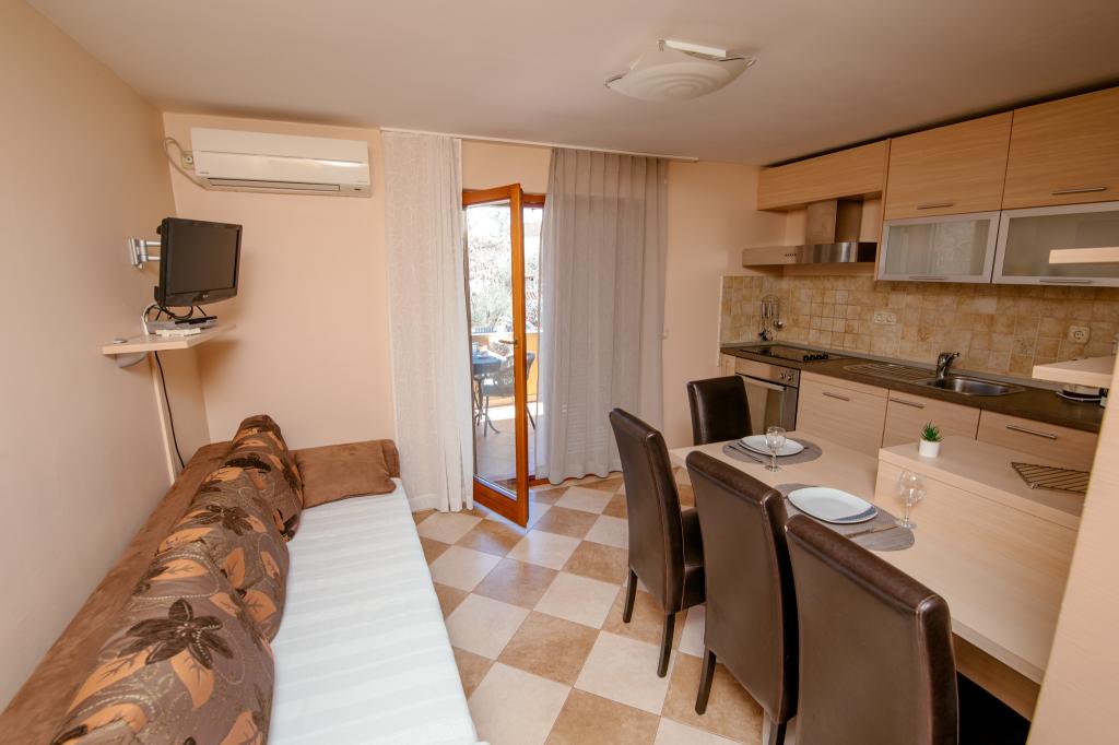 Apartamenty, nowoczesne, położone są w spokojnej okolicy. Od morza tylko 300m.
