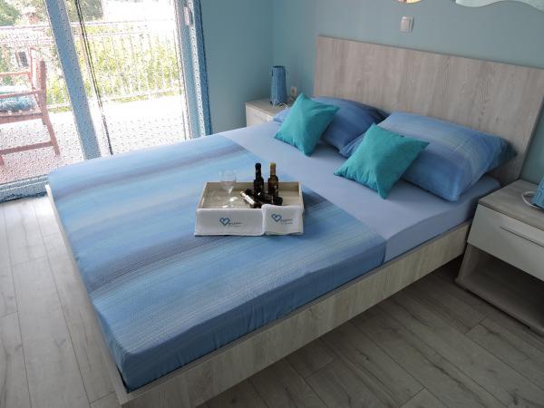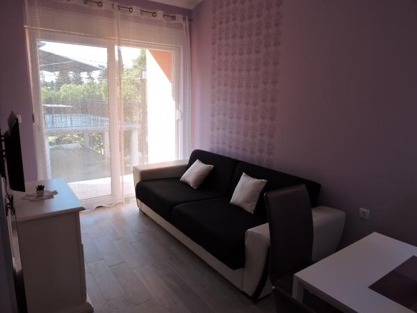 Apartamenty Perla 1 znajdują się w Biogradzie na moru w atrakcyjnej lokalizacji w pobliżu plaży Bosana (1 min spacerem) oraz w pobliżu centrum miasta. Apartament Perla 1 ma powierzchnię 80m2 z dwiema dużymi przestronnymi sypialniami, salonem, kuchnią i zupełnie nową łazienką. Przed apartamentem znajduje się duży taras ze stołem dla 8 osób. Za domem znajduje się komin z grillem. Apartament Perla 2 posiada dwie połączone sypialnie, jedną z podwójnym łóżkiem, drugą z dwoma pojedynczymi łóżkami. Przed apartamentem znajduje się taras, mieszkanie ma około 60 metrów kwadratowych. Parking jest bezpłatny, wi-fi za darmo. Nadaje się dla pary lub rodziny z dziećmi. Apartamenty Perla 3 i 4 to nowo wybudowane apartamenty odpowiednie dla par lub rodzin z dziećmi. Znajdują się one na pierwszym piętrze domu. Są nowocześnie i nowocześnie wyposażone i zapewniają gościom komfort i wygodę. Posiadają balkony i tarasy z drewnianymi meblami. Centrum miasta i nabrzeże oddalone są od obiektu o 10 minut spacerem.