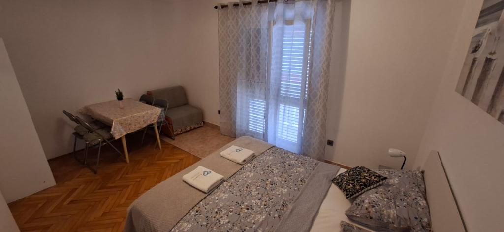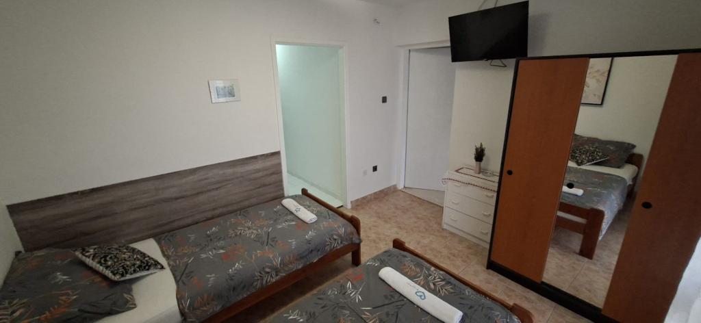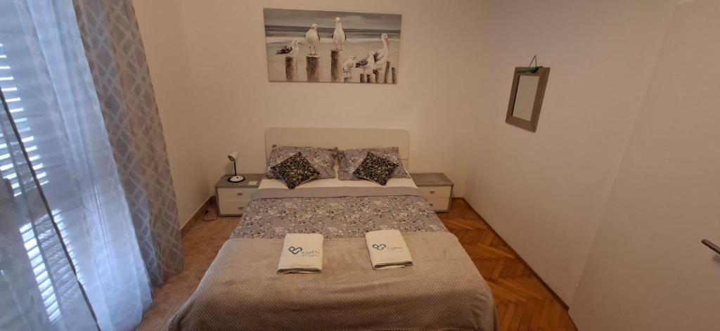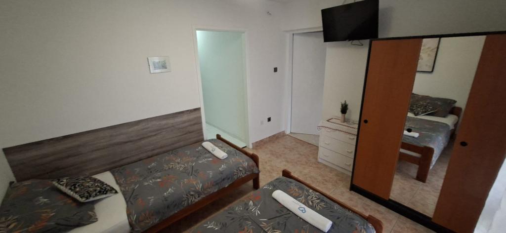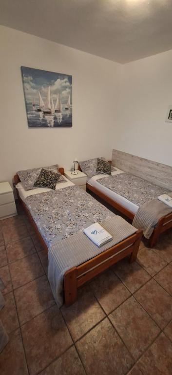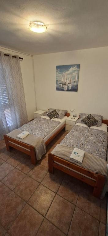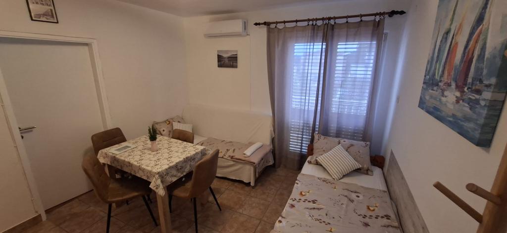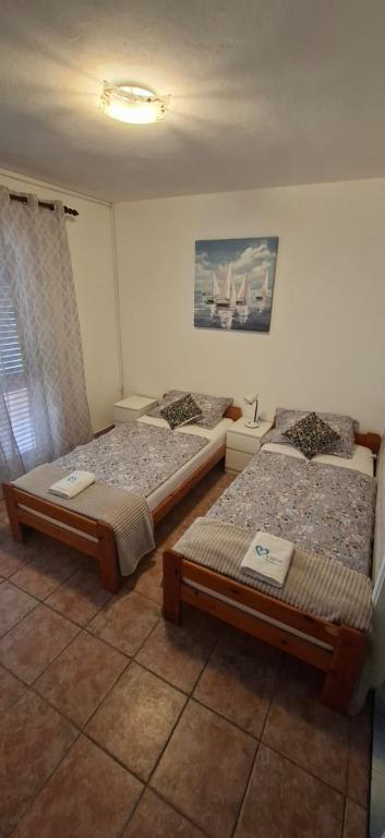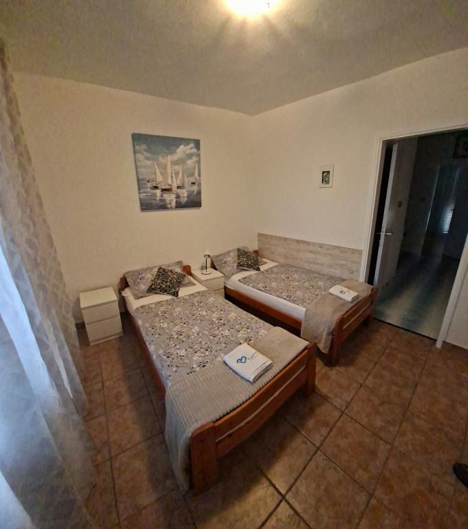 Apartamenty znajdują się w Biogradzie na moru w osadzie Kumenat. Idealny na rodzinne wakacje. Blisko plaży. Wybrzeże jest wcięte tak, aby każdy mógł znaleźć swój własny, cichy zakątek nad morzem. Plaże są piaszczyste i żwirowe. Do najbliższej plaży można dojść w 5 minut, a do centrum miasta można dojść w około 20 minut spokojnym spacerem promenadą nad morzem. Miasto Biograd oferuje liczne udogodnienia dla dorosłych i dzieci.
