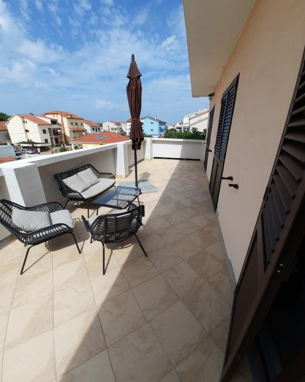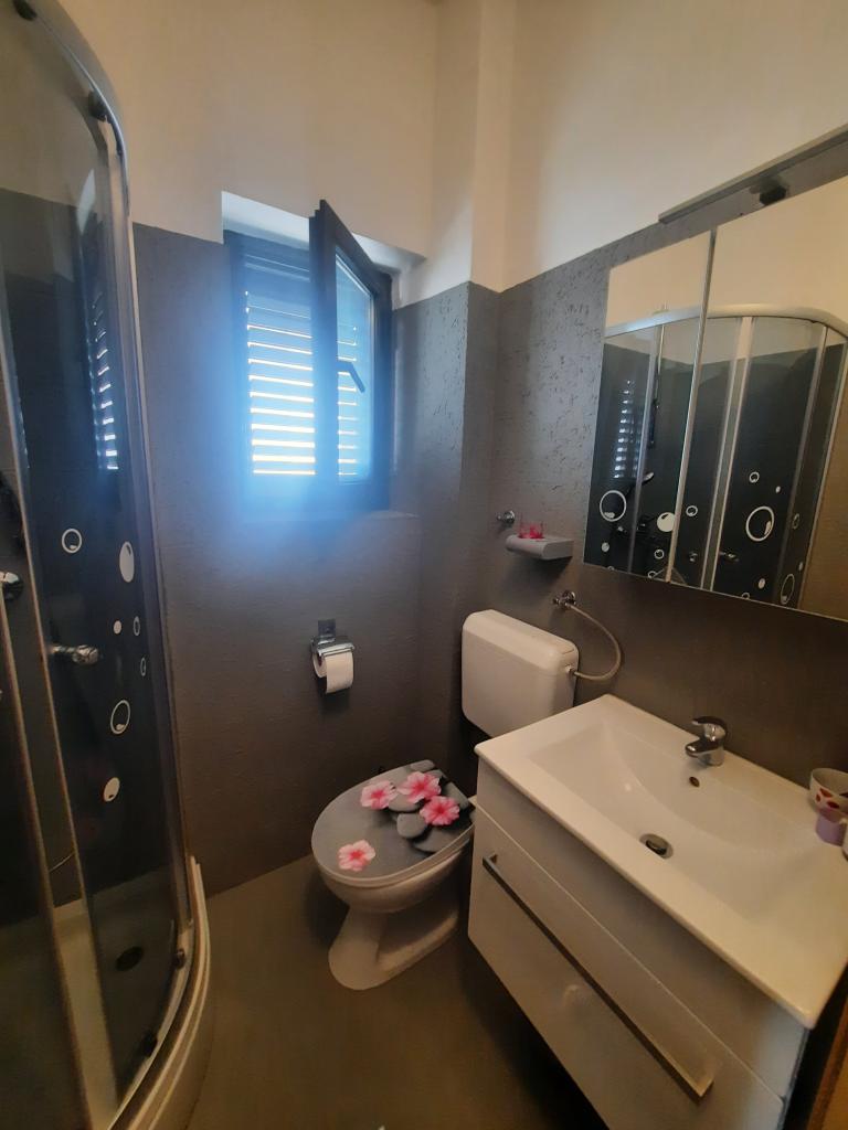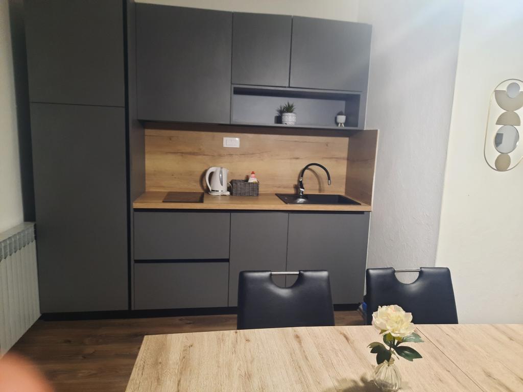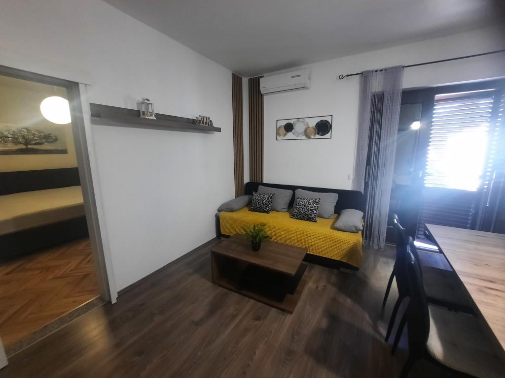 Opłata jest wliczone w cenę. Dokument potwierdzający rezerwację przy rezerwacjiByliśmy na tygodniowych wakacjach z dwójką dorosłych dzieci w szczycie sezonu. Byłam bardzo zadowolona z komunikacji z właścicielką, chociaż nie udało nam się spotkać. Jednak we wszystkim zastępowała ją jej mama. Lokalizacja apartamentu, położonego na 1. piętrze, jest dogodna – 7 minut od plaży Dražica. Apartament był czysty w dniu przyjazdu, urządzony z drobnymi akcentami, które uprzyjemniają pobyt. Było w nim wszystko: naczynia, sztućce, szklanki, ręczniki, wszystko, czego potrzeba do domu, w tym środki czystości i ściereczki. Przydałaby się mniejsza szafka na zakupy. Łazienka jest przestronna, jak już wspomniałem, ze wszystkim, czego potrzeba, łącznie z suszarką do włosów. Pokoje są połączone (przechodzi się z pierwszego do drugiego) i przestronne, a szafy są wystarczająco duże. Łóżka są wygodne, a materace wysokiej jakości. Każdy pokój ma osobne wyjście na taras. Taras jest duży, stół jadalny można przenieść na zewnątrz, ale my jedliśmy posiłki w środku, ze względu na ciepło i wygodę. Markiza i parasol zapewniają wystarczający cień. Mieszkanie jest wystarczająco duże dla czterech osób, dla pięciu byłoby to trudne. Fotel, który ma być rozkładany do spania, nie nadaje się do spania. W drugim pokoju znajduje się wentylator sufitowy, który nie zastępuje klimatyzacji. Dlatego jest tylko jedna klimatyzacja, w jadalni. Spaliśmy przy otwartych drzwiach między pokojami, więc trochę zimnego powietrza przedostawało się do drugiej sypialni. To również jedyne dwie rekomendacje dla gospodyni Silviji. Cena jest dość wysoka, ale byliśmy zadowoleni, bo mieliśmy już dość zamrożonych apartamentów z lat 70. Cena = komfort. Polecamy.