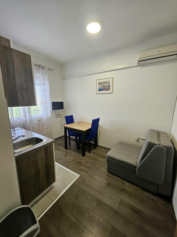 Mieszkanie jest przestronne, czyste i zadbane, nowe meble. Pościel i ręczniki są czyste i pachnące, łóżka wygodne. Duży taras z częściowym widokiem na morze, w spokojnym i cichym otoczeniu. Gospodarze są niezwykle przyjaźni. Parking na podwórku, w cieniu. Ma wszystko, czego potrzebujesz, aby poczuć się jak w domu.