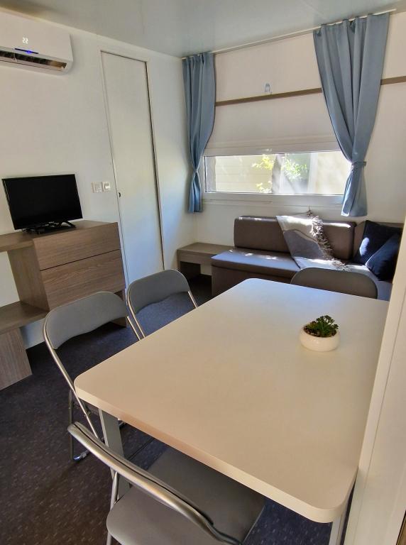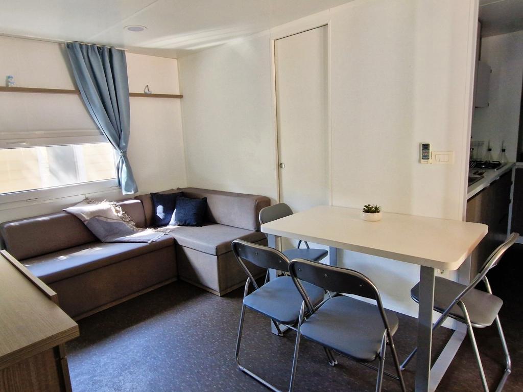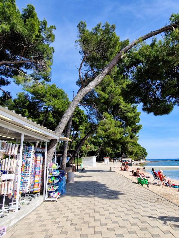 Witamy w przyczepie kempingowej ARIA, położonej na pięknym kempingu Soline Park, w cieniu gęstego lasu sosnowego tuż przy jednym z najpiękniejszych wybrzeży Morza Adriatyckiego. Lokalizacja oferuje idealne połączenie naturalnego spokoju i bliskości wszystkich udogodnień - do centrum Biogradu można dotrzeć w zaledwie 15 minut, spacerując po zadbanej nadmorskiej promenadzie. Wzdłuż całego wybrzeża kempingu znajdują się kamieniste i piaszczyste plaże, a także liczne kawiarnie, restauracje, sklepy i inne atrakcje turystyczne. Przyczepa kempingowa ARIA znajduje się pod numerem 693 i jest w pełni wyposażona na beztroski i przyjemny pobyt rodzinny. Zawiera dwie oddzielne sypialnie, salon z rozkładanym łóżkiem, kuchnię z jadalnią i przestronny taras, który jest bezpieczny dla dzieci. Klimatyzacja, TV, prywatne miejsce parkingowe, pralka. Zakwaterowanie jest szczególnie odpowiednie dla rodzin z dziećmi - taras jest ogrodzony, a otoczenie jest spokojne i naturalne. Na terenie ośrodka znajduje się również park rozrywki, plac zabaw dla dzieci, klub dla dzieci oraz różnorodne animacje dzienne i wieczorne.