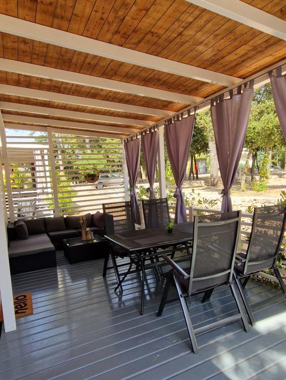 W cenę pobytu wliczone jest korzystanie z ręczników i pościeli. Dostępne są prąd, woda, gaz, pralka. Drink powitalny. Bezpłatny bezprzewodowy dostęp do Internetu. Zwierzęta są akceptowane na życzenie. Dodatkowe treści: Krzesełko dla najmłodszych, ergonomiczna regulowana wanienka dla niemowląt i ogrodzenie zabezpieczające łóżeczko. DALMALAND - park rozrywki tematycznej i wodny znajduje się w pobliżu. PARK PRZYGÓD BIOGRAD - położony w lesie sosnowym przy wjeździe do miasta. Idealny park adrenaliny w naturze, świetny dla rodzin, dzieci i każdego, kto chce aktywnie spędzić dzień na świeżym powietrzu. Kantor wymiany walut. Restauracja Park Soline/Kameni Dvori. Soline Beach Bar na piaszczystej plaży. Soline Beach: piaszczyste i kamieniste plaże, odpowiednie dla rodzin z rowerami wodnymi, wypożyczalnią kajaków, trampoliną i parkiem wodnym Wibit. Wzdłuż wybrzeża: Kamieniste i kamieniste plaże, z wydzielonymi strefami do pływania i strefami do jazdy na skuterach wodnych, wakeboardzie i nartach wodnych. Ląd i zawartość sportowa na terenie kempingu. Sporty wodne i przygody. Wycieczki, przyroda i zawartość edukacyjna. Animacje dla rodzin.