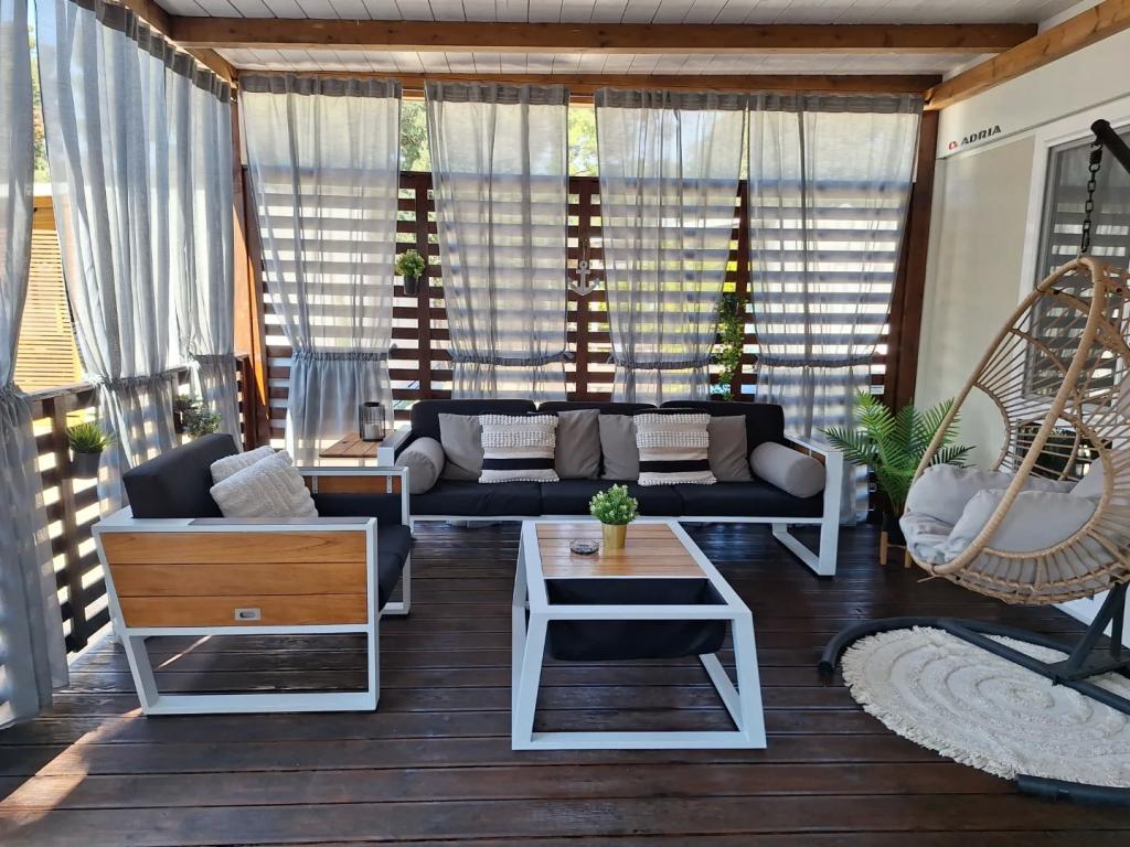 Domek mobilny Blue Lagoon (ID obiektu 71050) znajduje się na terenie kempingu Park Soline w Biogradzie na Moru. Kemping Park Soline położony jest w cieniu gęstego lasu sosnowego, tuż przy piaszczysto-żwirowej plaży, na 20 ha atrakcyjnych stanowisk kempingowych dla kamperów, przyczep kempingowych i namiotów, które schodzą schodami w kierunku wybrzeża. Znajduje się niedaleko centrum Biogradu, do którego prowadzi przyjemny spacer wzdłuż najpiękniejszych plaż Biogradu, prowadzący do nowo wybudowanej promenady... Adres: Put Kumenta 16 23210, Biograd na Moru...