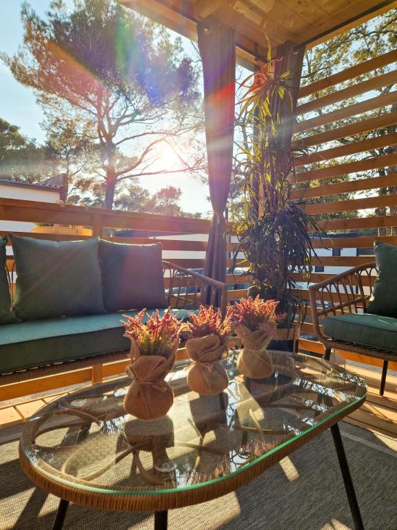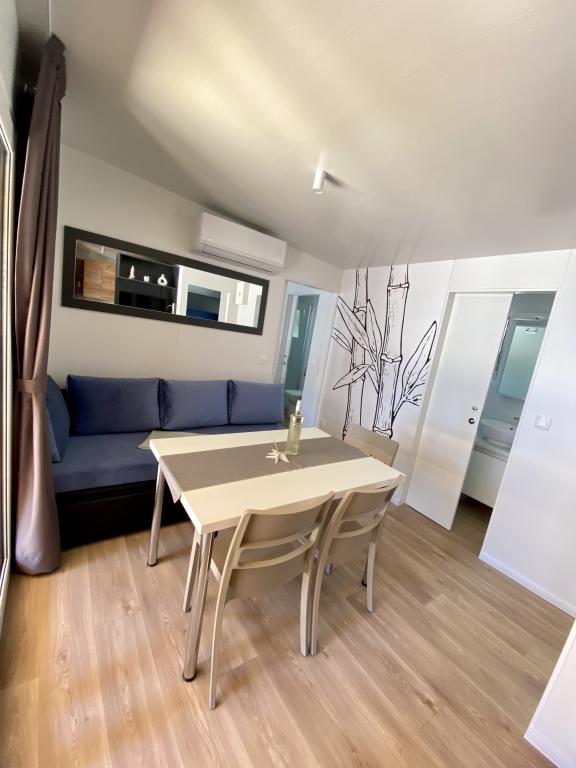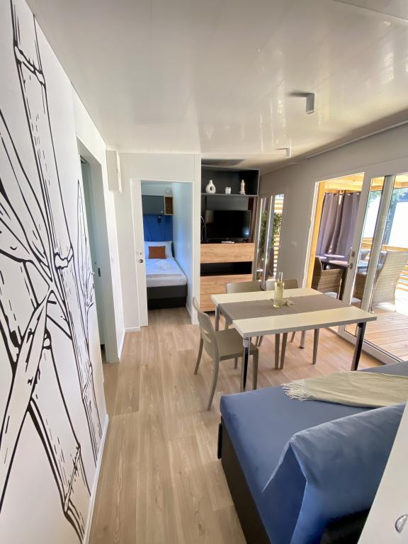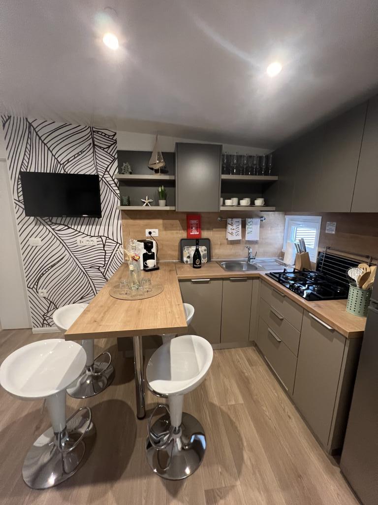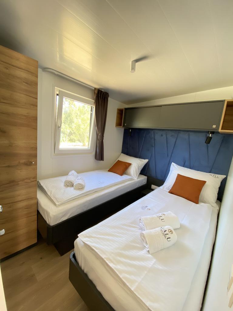 Domek mobilny MaLu znajduje się w słynnym parku kempingowym Soline w Biogradzie na Moru, jednym z najpiękniejszych kempingów nad Adriatykiem, położonym w naturalnym cieniu gęstego lasu sosnowego, tuż nad brzegiem morza. Domek znajduje się około 350 metrów od pięknej plaży Soline, która jest połączeniem piasku i drobnego żwiru i jest idealna dla rodzin z dziećmi ze względu na naturalny cień i łagodne zejście do morza. Park kempingowy Soline oferuje liczne udogodnienia, takie jak restauracje, kawiarnie, piekarnia, sklep, place zabaw dla dzieci i obiekty sportowe. Wzdłuż morza biegnie zadbana promenada, która łączy kemping z centrum Biogradu na Moru, do którego można dotrzeć w około 15 minut spacerem. Domek mobilny MaLu położony jest w spokojnej okolicy i idealnie nadaje się na relaksujący, rodzinny wypoczynek. Jest nowocześnie urządzony i w pełni wyposażony, zapewniając przyjemny pobyt. Duży, zadaszony taras pozwala na spędzanie czasu na świeżym powietrzu przez cały dzień i stanowi przyjemną przestrzeń do spożywania posiłków i relaksu. Domek mobilny pomieści do 6 osób i jest idealny dla rodzin lub par, które