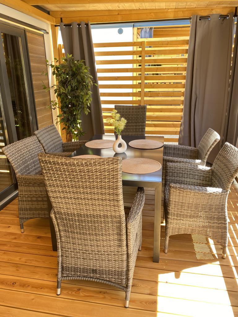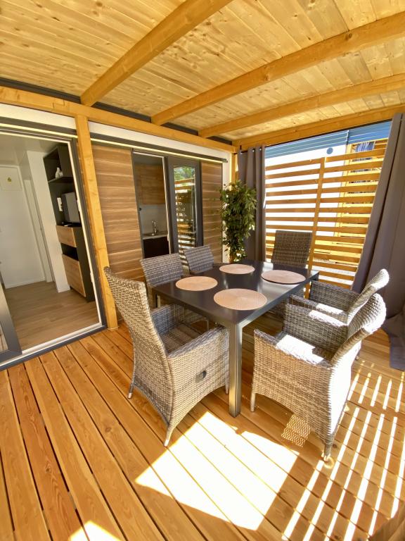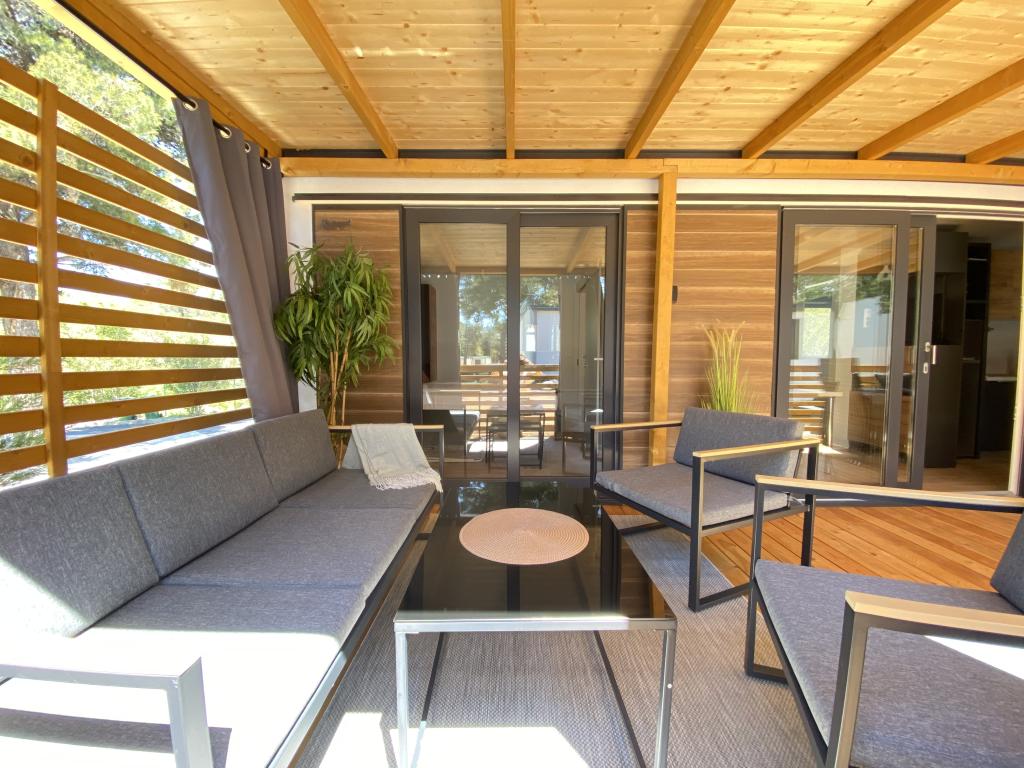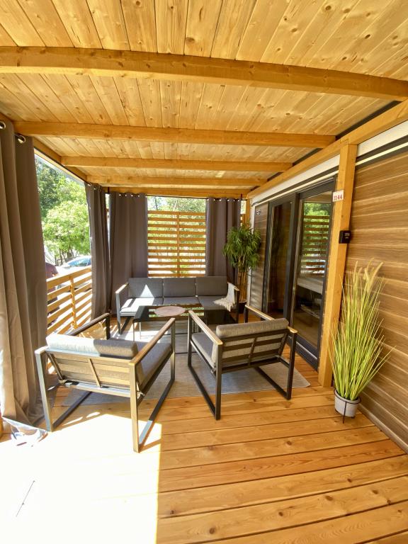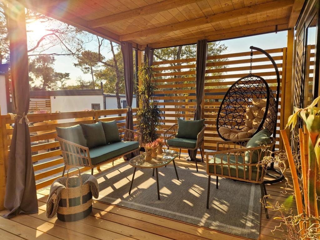 Zawartość domku mobilnego Domek mobilny zawiera: • 2 sypialnie • Salon z dodatkowym łóżkiem dla 2 osób • W pełni wyposażona kuchnia • Jadalnia • Łazienka • Duży zadaszony taras ok. 30 m² Wyposażenie • Klimatyzacja • Bezpłatny internet WiFi • Smart TV z kanałami satelitarnymi • Ekspres do kawy • Czajnik elektryczny • Toster • Mikrofalówka • Pełne wyposażenie kuchni • Grill • Suszarka do włosów • Pościel wliczona w cenę • Ręczniki wliczone w cenę Idealny dla rodzin Domek mobilny jest szczególnie odpowiedni dla rodzin z dziećmi. Dostępne są: • Łóżeczko dziecięce • Krzesełko do karmienia Zalety zakwaterowania Domek mobilny Biograd na Moru – Camping Park Soline Tylko 350 m od plaży Naturalny cień sosen Spokojna lokalizacja Duży taras Blisko morza Promenada wzdłuż morza do centrum Restauracje i sklepy na terenie kempingu Idealny dla rodzin