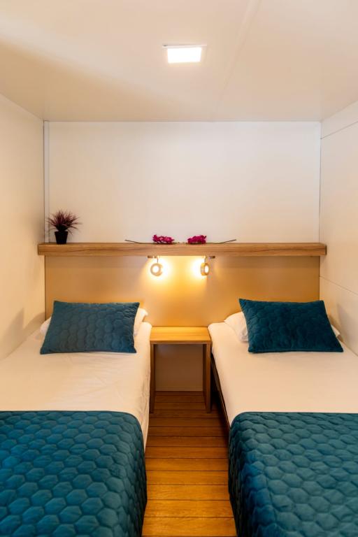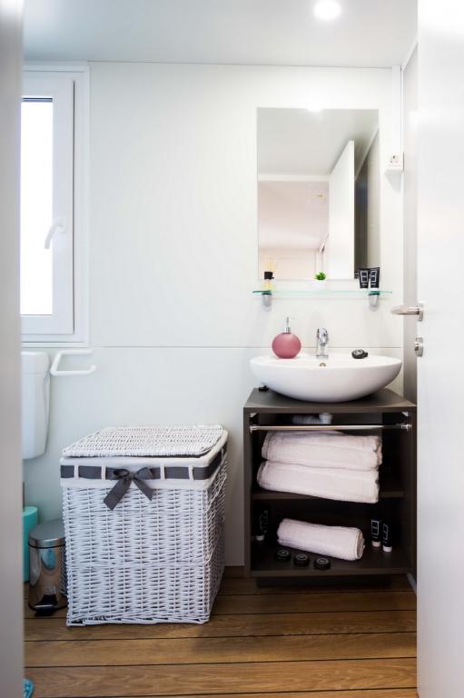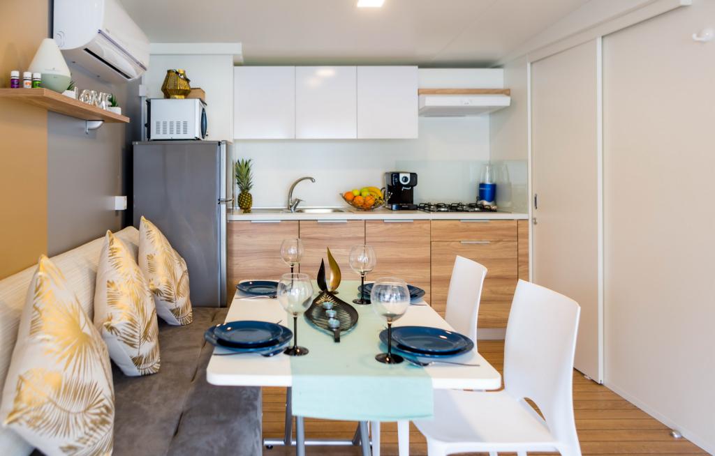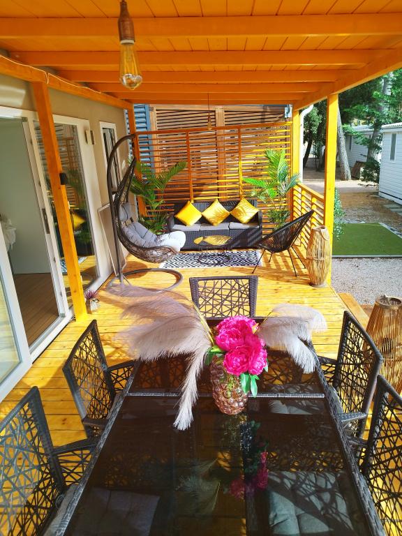 Domek mobilny Nancy znajduje się na terenie kempingu Soline w Biogradzie na Moru, zaledwie dwie minuty od pięknej kamienistej plaży. Składa się z dwóch pokoi, w tym jednego z łóżkiem (160 x 200 cm) i własnej łazienki/toalety. W drugim pokoju znajdują się dwa łóżka (80 x 200 cm), które można łatwo połączyć w jedno większe. Posiada salon, w pełni wyposażoną kuchnię, dodatkową toaletę/łazienkę, zmywarkę, kuchenkę mikrofalową, zamrażarkę, ekspres do kawy i sofę, którą można rozłożyć i która może pomieścić dwie osoby. Dom pomieści sześć osób (4 2). Na pięknym i przestronnym tarasie można odpocząć i podziwiać zachód słońca przy dobrym kieliszku wina. W Kampo znajduje się restauracja oddalona zaledwie 200 m od domu. Znajdują się tam również różnorodne kawiarnie i restauracje, a także place zabaw dla dzieci. Dla naszych najmłodszych gości codziennie organizujemy animacje. Do centrum Biogradu można dotrzeć ścieżką przez gęsty las sosnowy, który zapewnia cień i oferuje wiele atrakcji zarówno dla najmłodszych, jak i dorosłych.