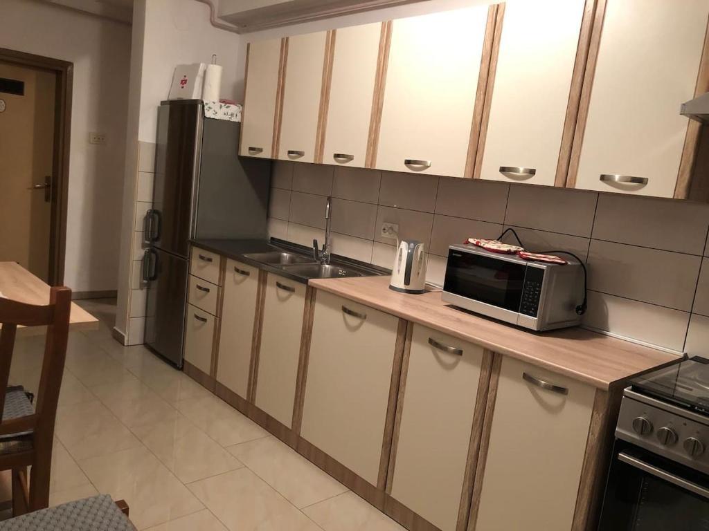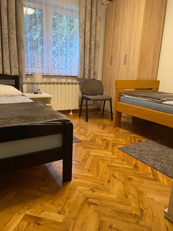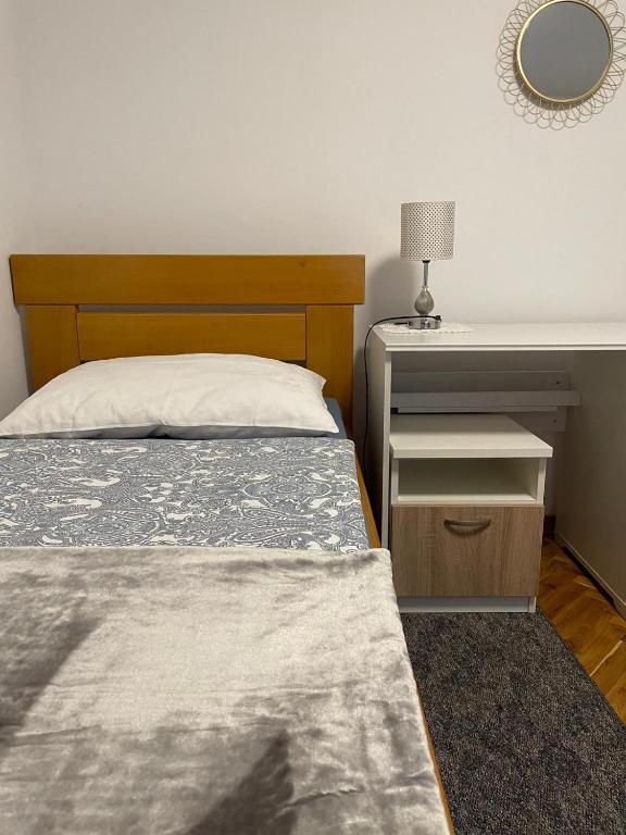 Mieszkanie znajduje się w prywatnym domu z osobnym wejściem. Znajduje się na parterze i może wygodnie pomieścić do 4 osób. Miejsce parkingowe znajduje się przed apartamentem i jest bezpłatne. Na ok. 50 m2 znajdują się: dwie sypialnie (dwa osobne łóżka 90x200 cm w jednej sypialni oraz łóżko małżeńskie 160x200 cm w drugim pokoju), salon z rozkładaną sofą, jadalnia zw pełni wyposażoną kuchnią, łazienka z prysznicem i pralką oraz tarasem. W salonie znajduje się klimatyzacja i telewizor, a w całym apartamencie można korzystać z bezpłatnego Wi-Fi.