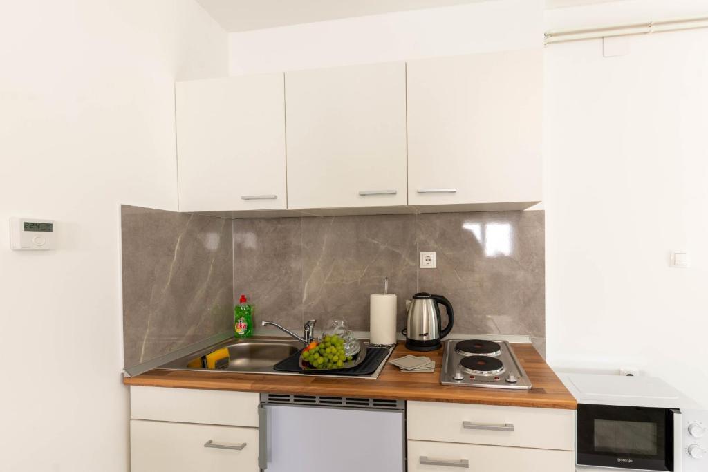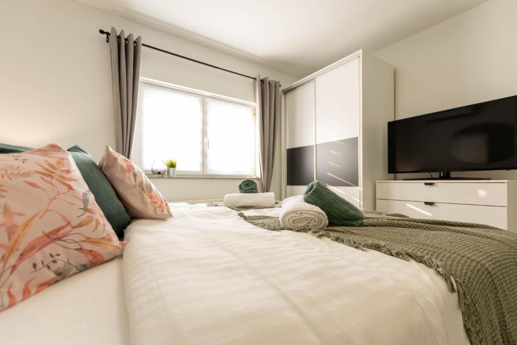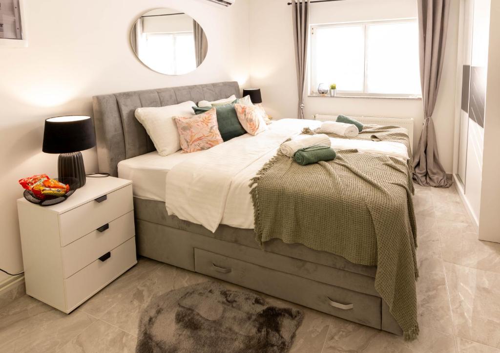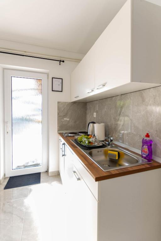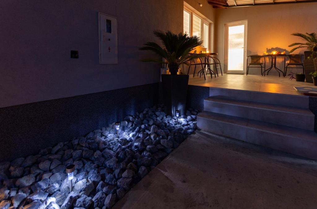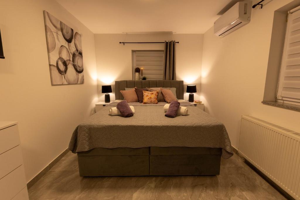 Dom składa się z dwóch apartamentów typu studio. Każdy apartament typu studio składa się z 1 sypialni z w pełni wyposażoną kuchnią, 1 łazienki, pościeli, ręczników, mydeł, żeli pod prysznic, szamponów, telewizora z płaskim ekranem, wspólnego tarasu do picia kawy i dużego ogrodu. Mieszkanie położone jest w spokojnej uliczce oddalonej o ok. 500 m od centrum miasta i jest wkomponowane w działkę. Dziedziniec i duży ogród oddzielają apartament od drogi, co pozwala na spokojny pobyt w apartamencie i na tarasie. Na podwórzu znajduje się parking dla samochodów osobowych.