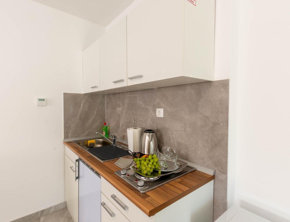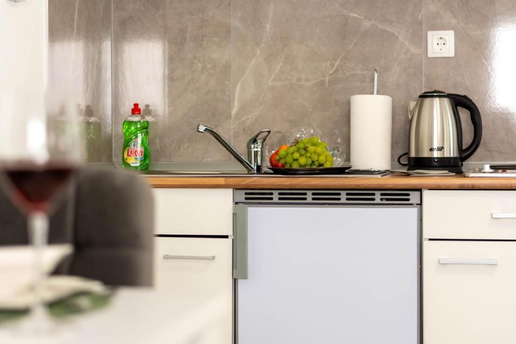 Opłata jest wliczone w cenę.W lodówce znajdziesz lokalne wino czerwone i białe, soki, wodę mineralną, lokalną brandy i miskę słodyczy.