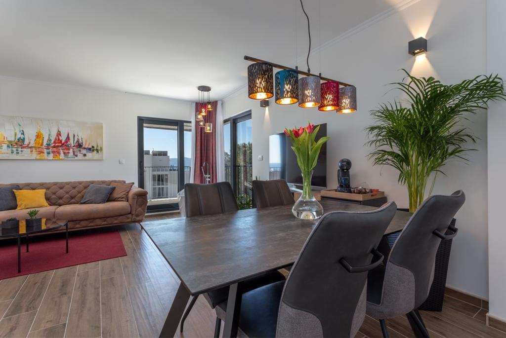Apartament Pleasure Bol to doskonałe połączenie lokalizacji, wygody i łączności. Wybrałeś najlepszą opcję, ponieważ po wjeździe do miasta Bol, wjeżdżasz do garażu na parterze apartamentu i tam kończą się wszelkie zmartwienia o bezpieczeństwo Twojego samochodu, którego już nie będziesz potrzebować podczas pobytu w Bol. Wejście do apartamentu wywoła uśmiech na Twojej twarzy, ponieważ oprócz designerskich detali, widok przyciągają duże szklane ściany, za którymi widać plażę Zlatni Rat, otwarte morze i piękny zachód słońca tuż przed Tobą. Wychodząc na taras, można podziwiać niezakłócony widok na najwyższy szczyt wyspy Brač - Vidovą Gorę (778 m n.p.m.).