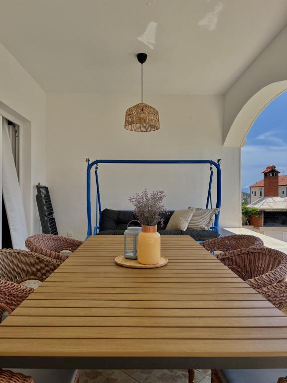 Dom położony jest w środku Bol, ale na lekko wzniesionym położeniu, aby był z dala od miejskiego zgiełku i nieuniknionego chaosu parkingowego, ale nadal tylko 6 minut spacerem do starego centrum Bol, 15 minut spacerem do wspaniałej „Złotej Wojny”. Dom posiada duży ogród z widokiem na morze. Na podwórzu znajduje się kominek do grillowania, z którego mogą korzystać wszyscy goście domu.