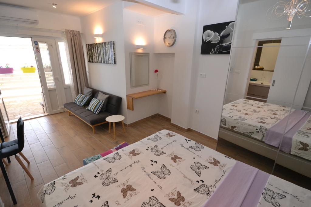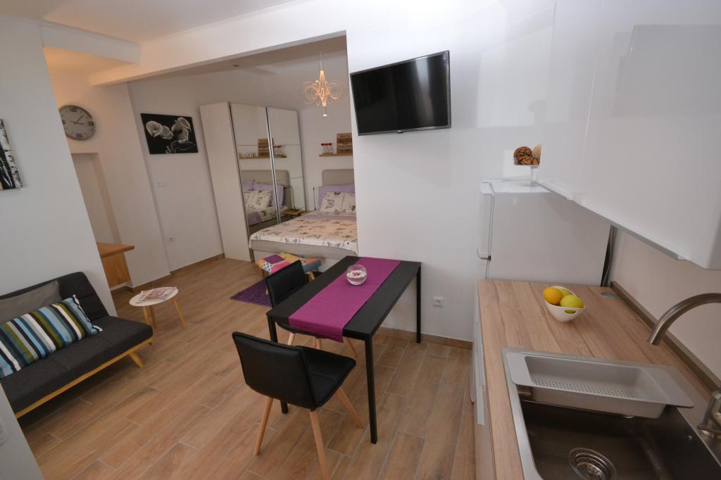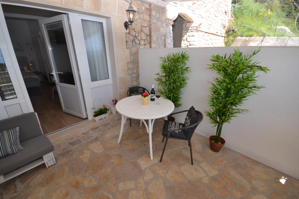 W pełni umeblowane apartamenty w małej wiosce pięć kilometrów od Bol, z pięknym widokiem na Brac-Hvar kanału, pięć minut spacerem od pięknej, piaszczystej plaży, w cieniu starych sosen.