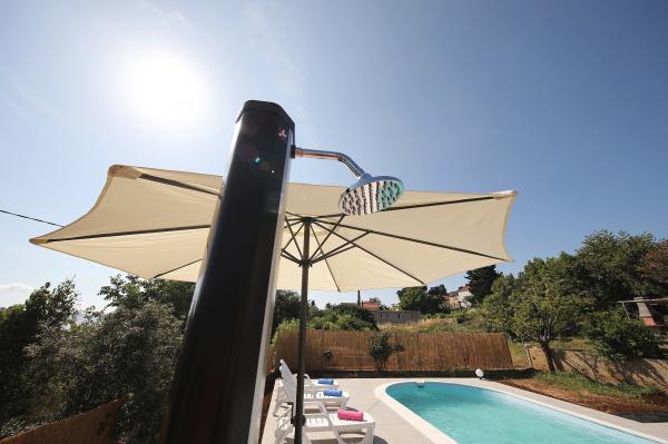 Byliśmy, osiem (4 dorosłych i 4 dzieci) dwa tygodnie w domku, i bardzo zadowoleni z pobytu. Dom, absolutnie odpowiada opisowi, i jeszcze lepiej, bardzo miły pomocny właściciel, z którego otrzymaliśmy powitanie po przyjeździe z napojami. Dom został całkowicie odnowiony ma idylliczny ogród, basen i taras, z którego roztacza się piękny widok na morze. Meble ogrodowe, leżak, i ogrodzony grill są dostępne. Wyposażenie domu jest wspaniałe, wszystko jest dostępne, nawet pralka, i zmywarki są dostępne do użytku. Brakuje, NIC, a jeśli potrzebujesz czegoś więcej, jest organizowane przez właściciela. Jeśli szukasz wypoczynku i relaksu na wakacjach lub nie masz ochoty na plażę po całym dniu spędzonym na świeżym powietrzu, ale chcesz się zrelaksować przy samym basenie, znajdziesz tu idealne warunki. Basen jest bardzo czysty i był sprzątany codziennie. To było bardzo przyjemne i relaksujące wakacje. Miejsce do wypoczynku, zawsze zalecane.