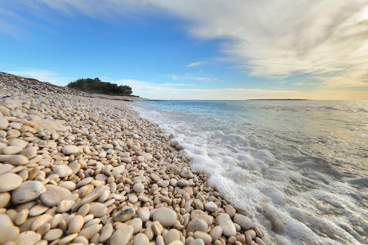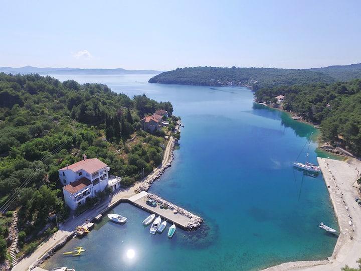 Dom wakacyjny ISLAND to nasza miłość i lekki dom. Dom wakacyjny OTOK jest jednym z długoterminowych obiektów z basenem na Dugi otok i jest wynajmowany jako dom i jesteś jedynym gościem. Został całkowicie odnowiony W 2017 roku rozłożona jest na dwóch piętrach o łącznej powierzchni 100m2 z ogrodem 500 m2. Na parterze znajduje się kuchnia z jadalnią i salonem i łazienka. Na pierwszym piętrze znajdują się trzy sypialnie i łazienka, przed domem jest piękny taras o powierzchni 60 m2, w którym będziesz się dobrze bawić letnie wieczory z widokiem na ogród, basen i okolicę. Goście mają dostęp do parkingu i grilla na świeżym powietrzu. Przyjdź zobaczyć, żyj i kochaj naszą wyspę!
