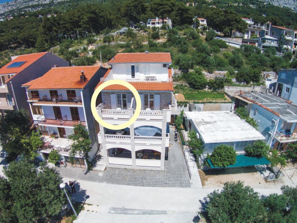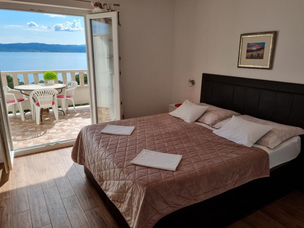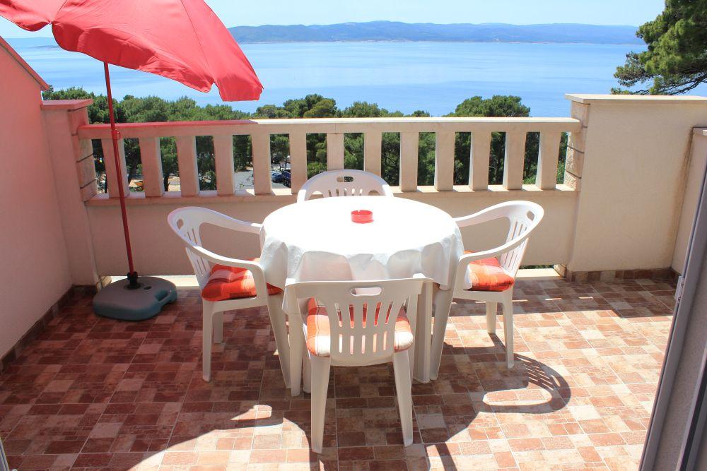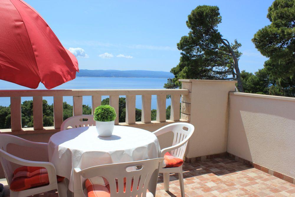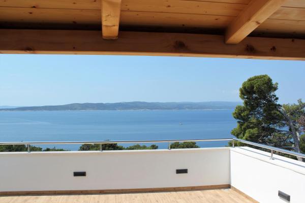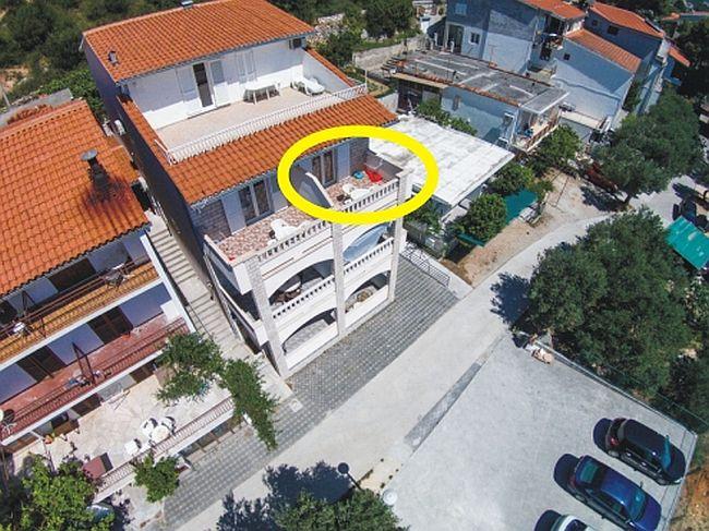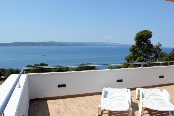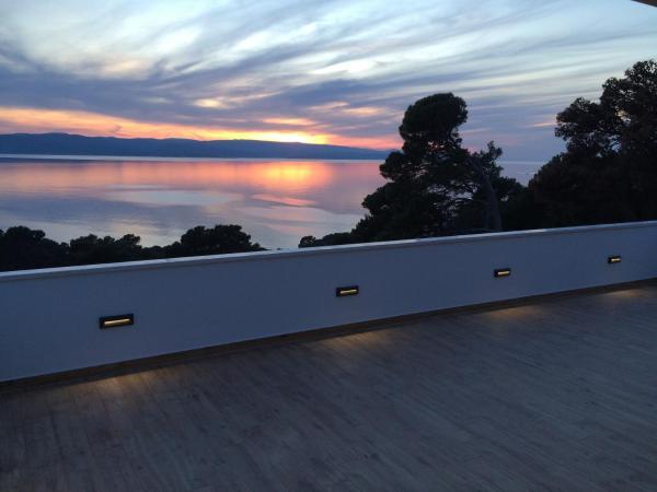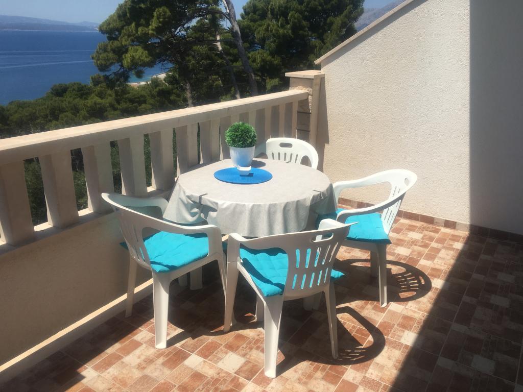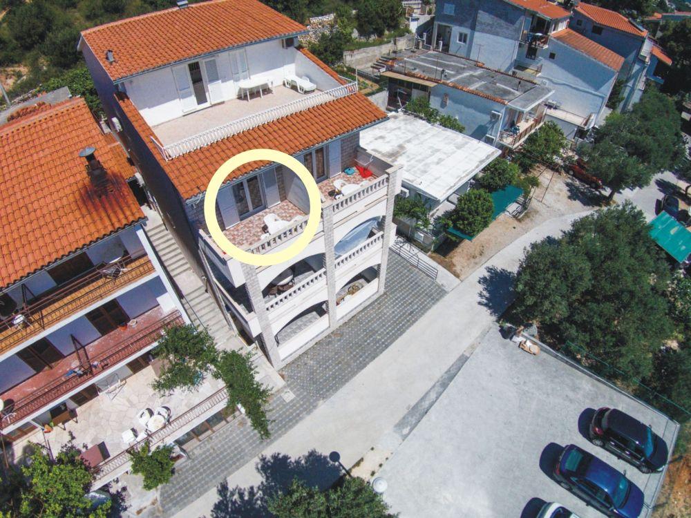 Budynek znajduje się przy bardzo cichej (ślepej uliczce), gdzie nie ma ruchu (tylko samochody należące do gości i właścicieli budynku) i oferuje wspaniały widok na las sosnowy, morze i pobliską wyspę Brač. Odległość do głównej plaży i centrum miasteczka to ok. 300m. Nasz parking jest strzeżony przed budynkiem.