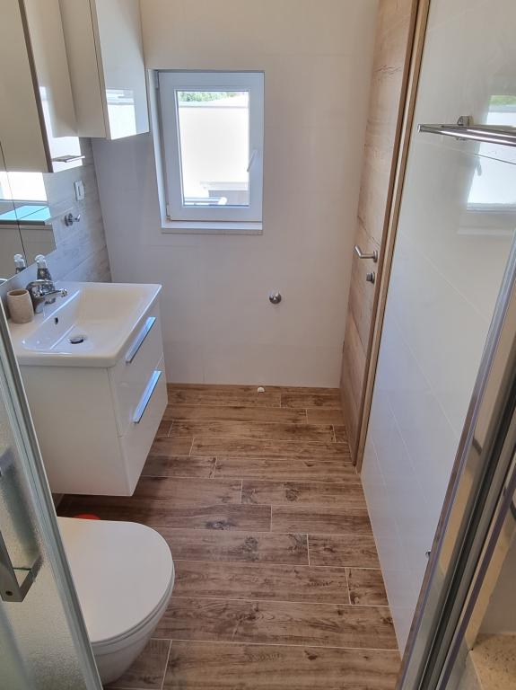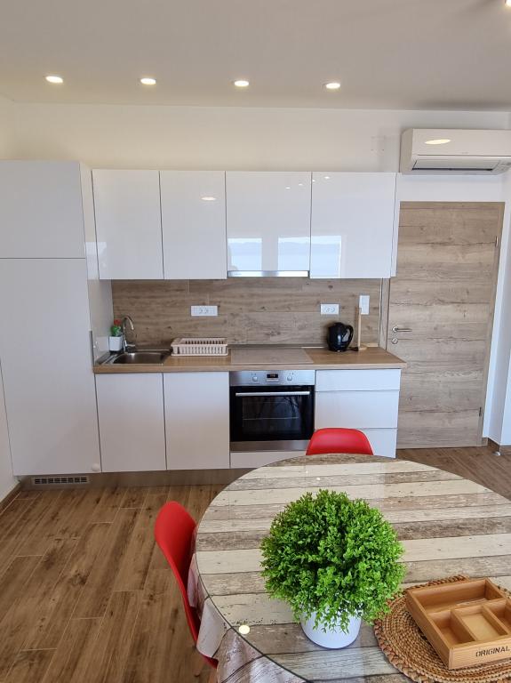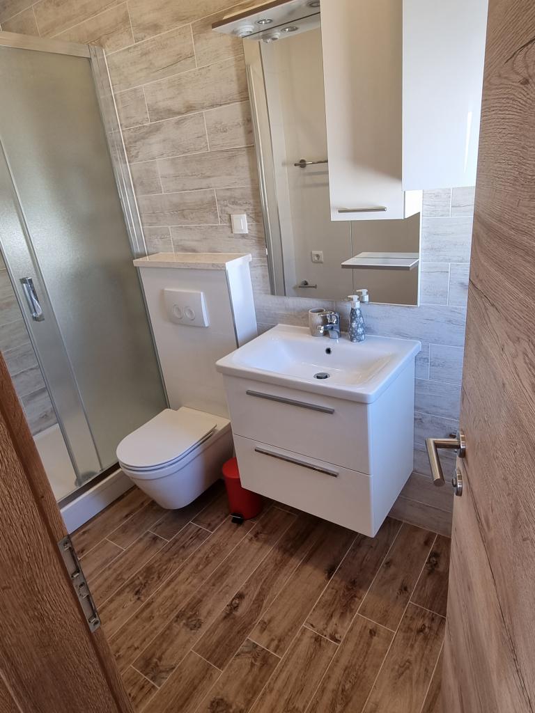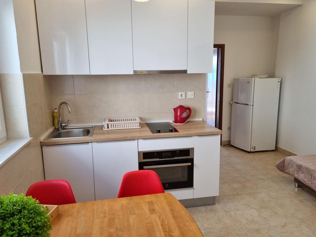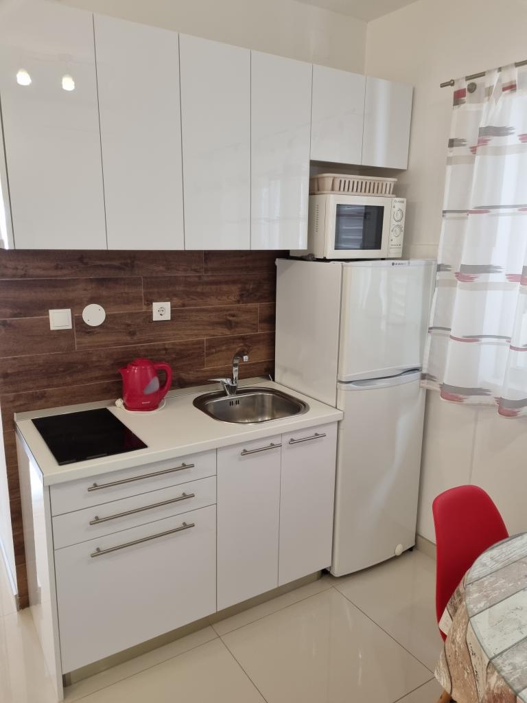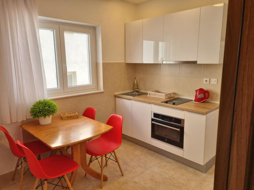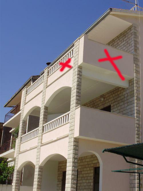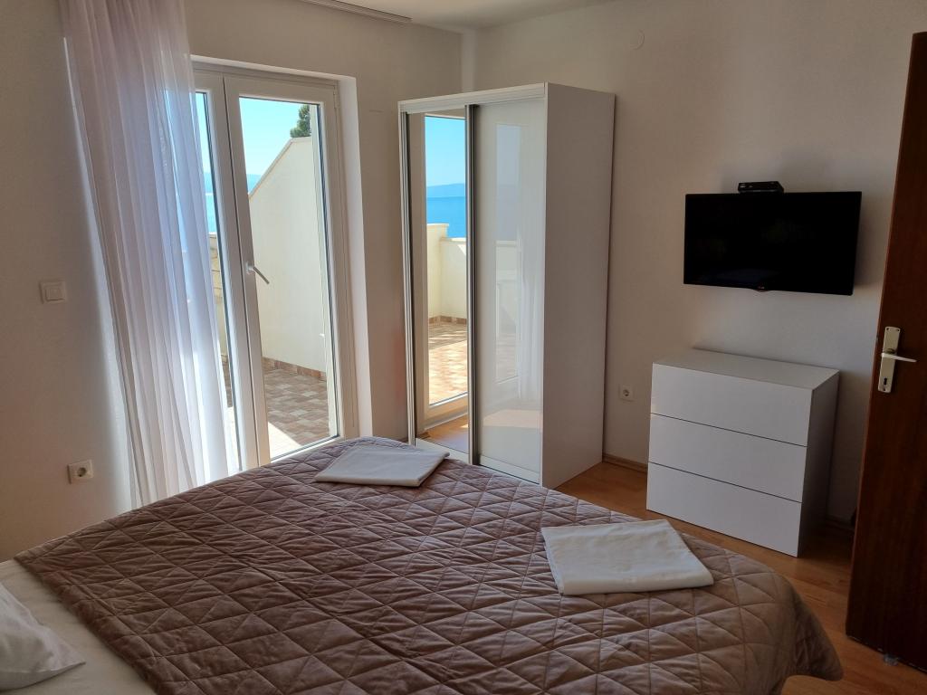 Budynek znajduje się przy bardzo cichej (ślepej uliczce), gdzie nie ma ruchu (tylko samochody należące do gości i właścicieli budynku) i oferuje wspaniały widok na las sosnowy, morze i pobliską wyspę Brač. Odległość do głównej plaży i centrum miasteczka to ok. 300m. Nasz parking jest strzeżony przed budynkiem.