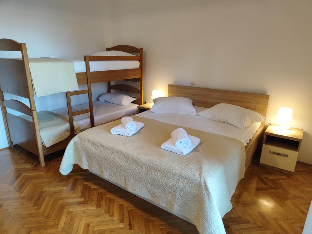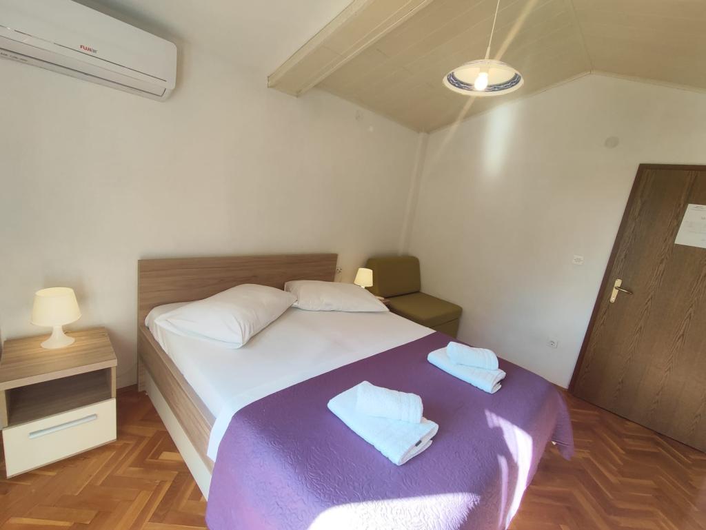 Nasze apartamenty położone są w spokojnej części Breli, idealnej na rodzinne wakacje i pełen relaks. Położone wśród pachnących sosen, oferują wspaniałe widoki na krystalicznie czyste Morze Adriatyckie i górę Biokovo. Apartamenty są nowocześnie wyposażone. W każdym pokoju znajduje się prywatna łazienka, balkon, klimatyzacja, ręczniki i pościel. W pełni wyposażona kuchnia (kuchenka, lodówka, komplet naczyń i sztućców) pozwala na przygotowywanie posiłków w komfortowej, domowej atmosferze. Każdy apartament posiada przestronny taras, TV, WiFi, parking oraz możliwość korzystania z grilla, co pozwoli na spędzenie niezapomnianych wieczorów nad morzem. Dom położony jest na wzgórzu, zaledwie 100 metrów od kamienistych plaż, idealnych do pływania i opalania. Brela znana jest ze swojego naturalnego piękna, długiej promenady wzdłuż wybrzeża i legendarnego Kamienia Brela. Ponadto w pobliżu znajdują się liczne restauracje serwujące lokalne specjały, kawiarnie nad morzem oraz miejsca do uprawiania różnych sportów i rekreacji, np. turystyki pieszej, kolarstwa i sportów wodnych. ️