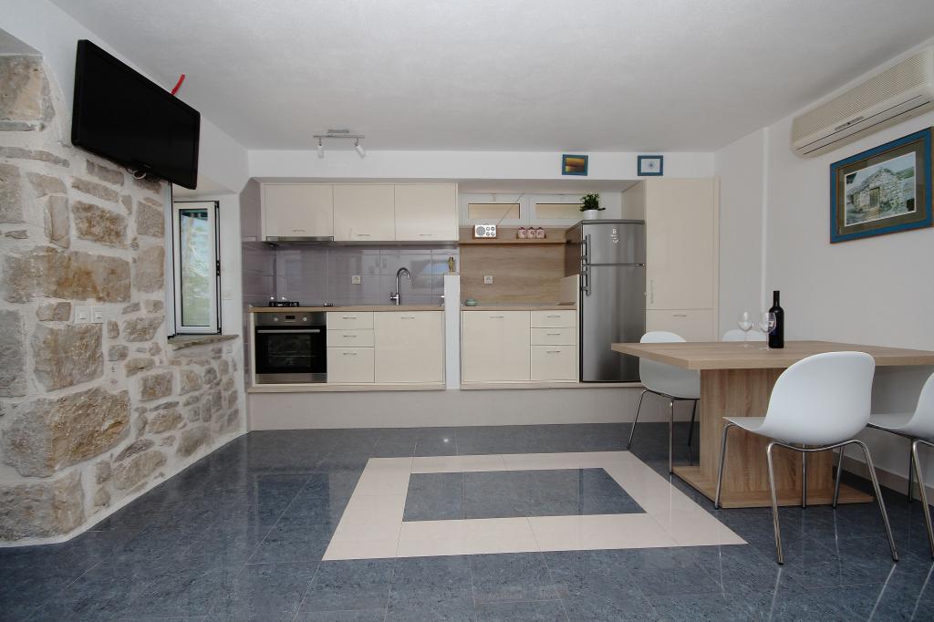 Apartamenty Sine I Ante są w pełni wyposażone w 2014 roku, kiedy otwierają drzwi dla gości. Znajdują się one w spokojnej części Breli, 200 m od morza, z zabezpieczonym parkingiem tuż nad morzem, jeśli gość tego chce. Klimatyzacja, Wi-Fi, taksony i parking są wliczone w cenę. Apartament Dalmacja został całkowicie odnowiony w 2019 roku, a goście zakwaterowani w dwóch dorosłych i dwójce dzieci oferują przestronny taras z grillem z jacuzzi. Zrelaksuj się na wygodnych leżakach i ciesz się oazą spokoju i zieleni z rodziną. Czekamy na Państwa przyjazd.