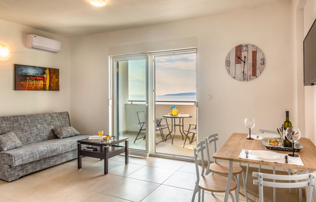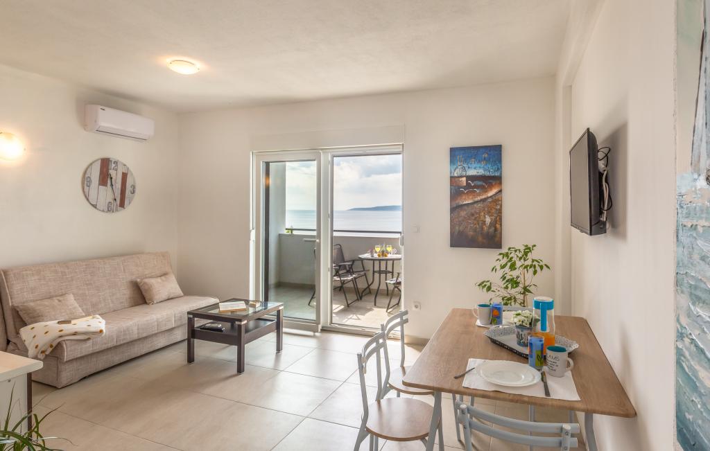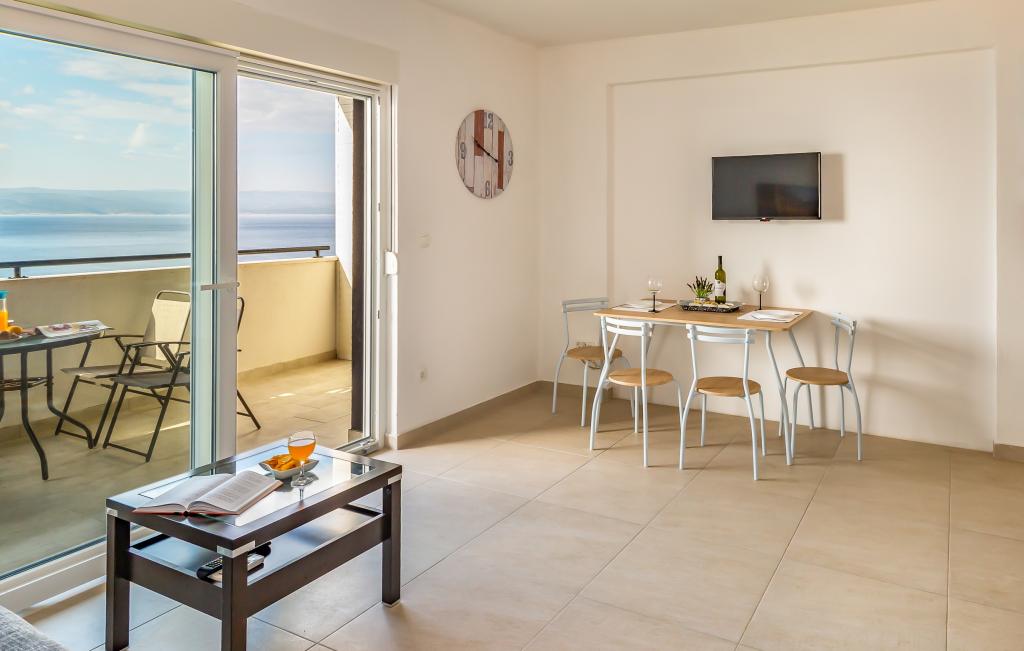 Apartamenty Eol znajdują się w miejscowości Brela, w żupani splicko-dalmatyńskiej, obok plaż Jakiruša i Podcrkavlje. Goście mają do dyspozycji bezpłatny bezprzewodowy dostęp do Internetu oraz prywatny parking. Wszystkie apartamenty mają otwarty widok na morze, które jest oddalone o 30 m w linii prostej, klimatyzację, łazienkę, telewizor z płaskim ekranem, szafę, salon, wyposażoną kuchnię, sypialnię i duży taras z widokiem na morze. Plaża znajduje się 70-80 m od obiektu, a plaża dla psów (Stomarica) ok. 800 m od obiektu. Budynek został wybudowany w 2019 roku, od tego czasu jest wynajmowany turystom i znajduje się w niezwykle spokojnej części Breli w pobliżu plaży Vruja. W bezpośrednim sąsiedztwie Breli znajduje się Park Przyrody Biokovo z promenadą Skywalk, z której roztacza się panoramiczny widok na wszystkie wyspy środkowej Dalmacji. W pobliżu znajduje się rzeka Cetina z raftingiem, canyoningiem, tyrolką i terenami piknikowymi z wysokiej jakości restauracjami.