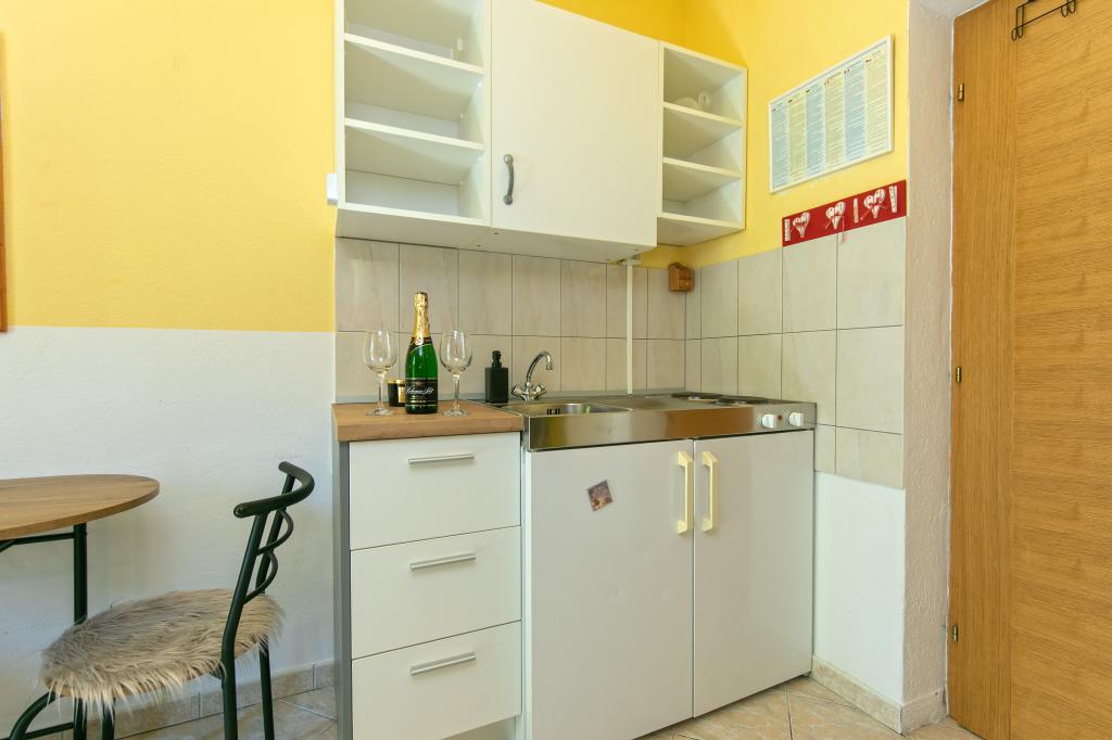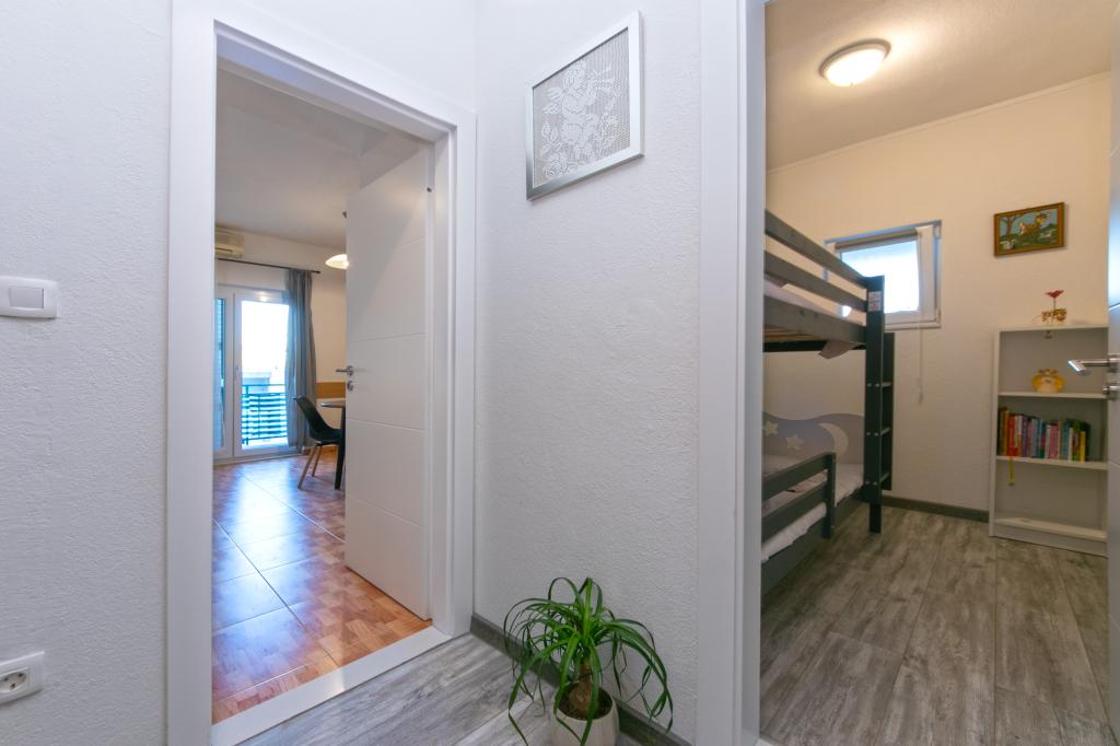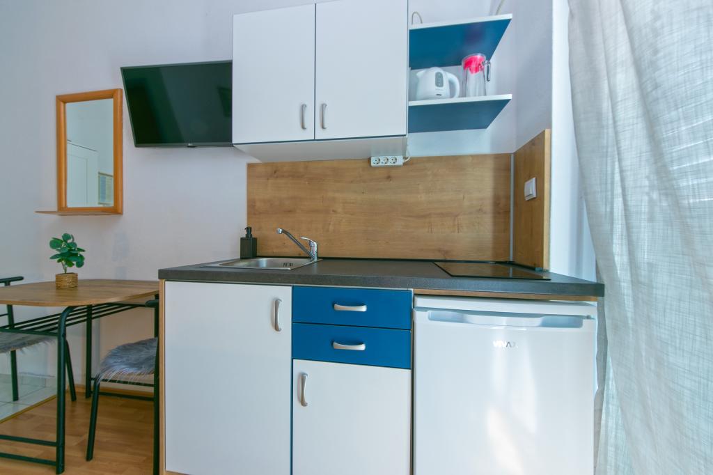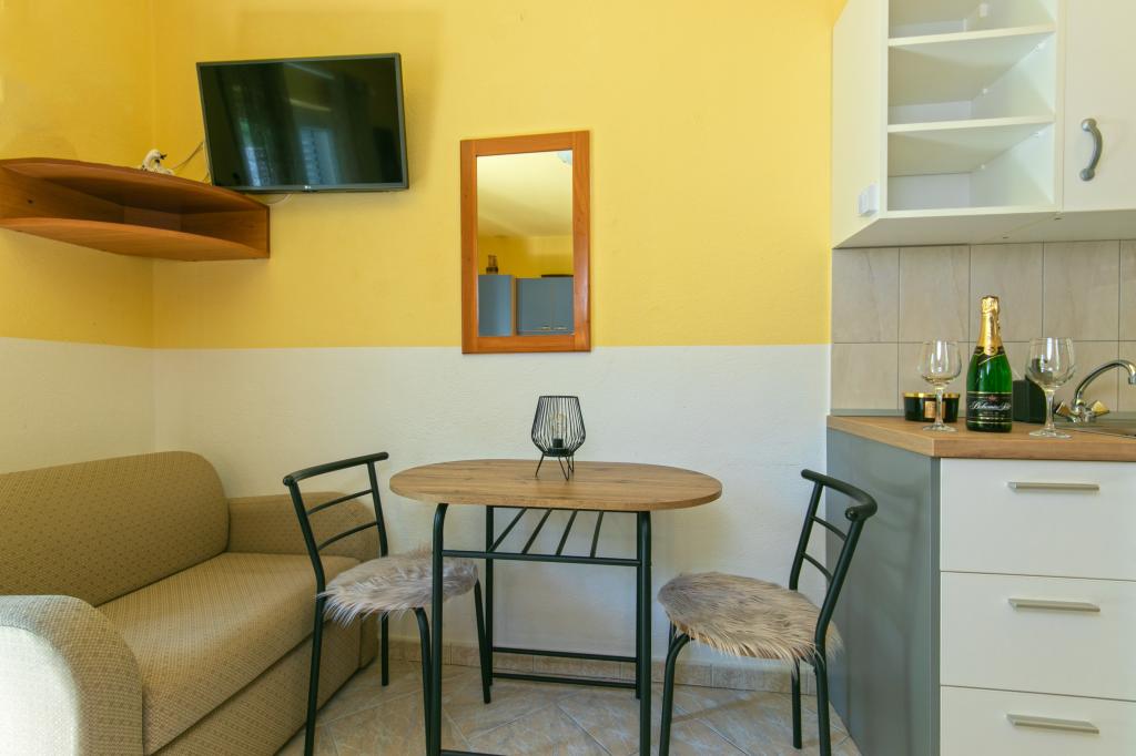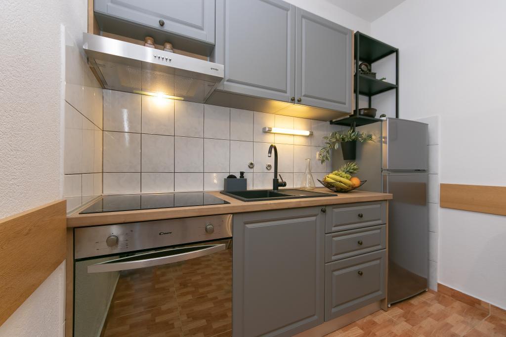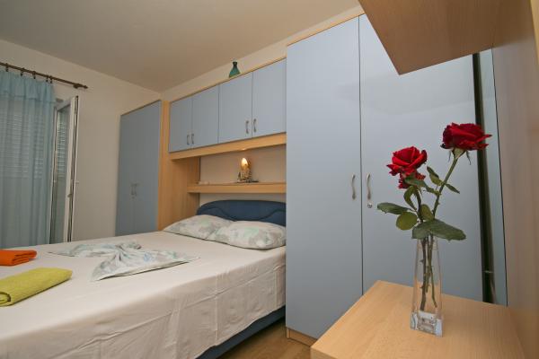 Apartamenty Hrvoje znajdują się na wzniesieniu, w cichej części ulicy Stomarica. Odległość od plaży żwirowej wynosi około 3 min. spacerem lub 150 m. Po jednej stronie domu znajduje się widok na morze, a drugi ma widok na górę Biokovo. Oferta rodziny Jelčić to jakość, a goście mogą w pełni zrelaksować się w apartamentach i spędzić niezapomniane wakacje. Apartamenty zadowolą wszystkich gości, którzy chcą spędzić przyjemny urlop. Oferta zakwaterowania obejmuje apartamenty wyposażone w kuchnię, sypialnię, klimatyzację, telewizję satelitarną, łazienkę i balkony. Za domem znajduje się taras ogrodowy ze stolikami, gdzie goście mogą odpocząć, podziwiając spokojną atmosferę z widokiem na morze. Dostępne jest również korzystanie z grilla na świeżym powietrzu, ale przyjazna pani. Jelcic chętnie im pomoże. Parking jest zabezpieczony.