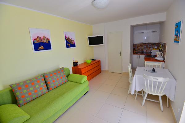 Super lokalizacja i wspaniały gospodyni pani Edita i jej mama, która wspaniałe ciasta. Apartament posiada wspaniały widok na morze i duży zadaszony taras w cieniu, a jeśli chcesz mieć słońce na balkonie. Mieszkanie jest odnowione, w środku masz wszystko, czego potrzebujesz na wakacjach. Dzieci bardzo zadowoleni, bo to naprawdę wystarczająco dużo miejsca, aby grać na tarasie oraz w mieszkaniu. Także w pobliżu jest pełen pięknych plaż. To miłe, że wszystkie zabawki, i plaży można pozwolić na plażę w oddzielnym pomieszczeniu. Sklep jest dość blisko. Wieczorem można chodzić wzdłuż wybrzeża. Lubimy i przyszłym roku będą refundowane.