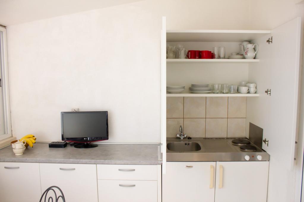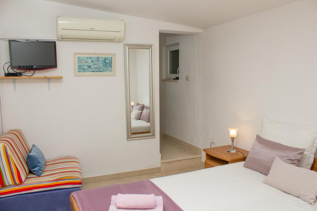 Na początek chciałbym wspomnieć, że z apartamentu do plaży jest 230 kroków. Kolejna sprawa to parkowanie. Przybyliśmy do mieszkania, a pani mówi, że zaparkujmy nasz pojazd za pojazdami innych gości. Na moje pytanie, co jeśli ta osoba, którą zaparkowaliśmy, musi wyjść samochodem, odpowiada, że zadzwoni do nas, aby przestawić jej samochód, aby inni goście mogli wysiąść. Gorszący. Kolejną niedopuszczalną rzeczą jest wejście gospodarza do apartamentu pod naszą nieobecność, oczywiście weszli sprawdzić czy działa klimatyzator bo to jest karalne. Mieszkanie jest na poddaszu i robi się strasznie gorąco w środku, więc klimatyzacja jest konieczna. Zostawiliśmy włączony klimatyzator na 2 godziny, kiedy nas nie było, a pani przyszła nas ostrzec, że nie powinniśmy tego robić, ponieważ weszła do mieszkania, gdy nas nie było, aby sprawdzić. Sam klimatyzator działa słabo, tzn. obniżenie temperatury o 2-3 stopnie zajmuje godzinę. Klimatyzację też czuć bo zbyt drogo przed sezonem kupić spray za 10 euro i wyczyścić klimatyzację. Drzwi balkonowych nie da się do końca zamknąć bo są zepsute, pani oczywiście pytała dlaczego nie były do końca zamknięte jak była na patrolu pod naszą nieobecność. W łazience nie ma ani okna, ani wentylatora, ale dzięki Bogu ma na suficie podłogę statku, co daje się odczuć po jej stęchliznie. Kabina prysznicowa przecieka na podłogę, ponieważ uszczelki wokół kabiny nie są dobre. Szafa to spuścizna z minionej epoki, a wieszaki w niej są lepkie. Nie mogłem zmyć kleju z rąk ani z koszulki, którą powiesiłem na wieszaku. Sztućce leżą w szufladzie, która nie była czyszczona od dłuższego czasu. Telewizor jest właściwie monitorem pełniącym funkcję telewizora. Zasadniczo nie polecam tego zakwaterowania, a na dowód wszystkiego mogę dołączyć zdjęcia. Postanowiliśmy wcześniej opuścić mieszkanie i poszukać bardziej odpowiedniego zakwaterowania. Gospodarze nie zdecydowali się na zwrot pieniędzy za dni, w których nie byliśmy u nich, a za cały planowany pobyt zapłaciliśmy pierwszego dnia po przyjeździe. Błąd.