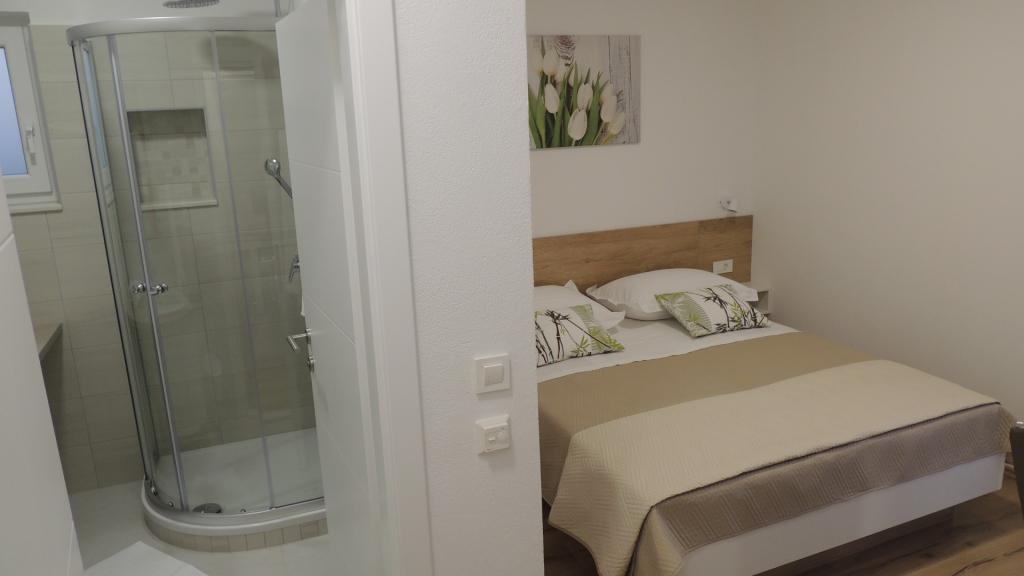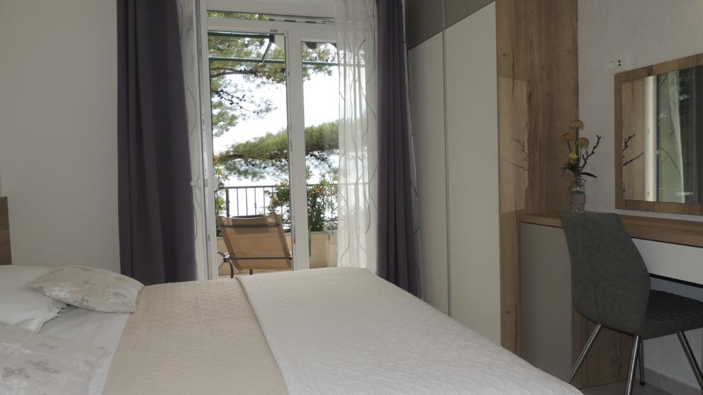 Zapraszamy do spędzenia wakacji w miejscowości Brela w naszym rodzinnym domu położonym w sosnowym lesie, zaledwie kilka metrów od morza i pięknych plaż. Oferujemy zakwaterowanie w apartamentach dla dwóch lub więcej osób. Każdy apartament posiada taras lub balkon z widokiem na morze. Wszystko czego potrzebujesz to blisko - sklepy, restauracje, plaże, spacery ... Dla Twojego samochodu mamy parking obok domu. Plaża z prysznicami znajduje się pod naszym domu, aż dojdzie do własnej klatki schodowej. Główna plaża Brela, Punta Rata od naszego domu zaledwie 300 metrów. Breljanska 6 km wybrzeża znana jest z pięknych plaż, jak i dla tych, którzy chodzą całe odcinki promenady linii brzegowej - wybrać się na spacer wzdłuż morza i zapachem sosny. Jeśli nie chcesz wydawać tylko Brela należą wylegiwanie się na plażach i przechadzać się po relaksujący dźwięk fal i zapachem sosen, oferując wiele możliwości rekreacji