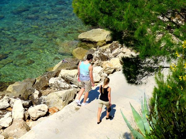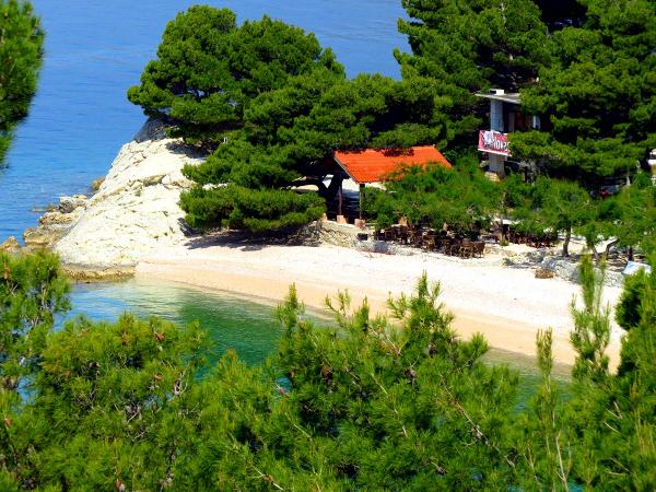 Apartamenty Pino Brela są ze sobą od 1981 roku. Villa jest położona w obszarze Podrače w Breli, 20 metrów od morza, w pobliżu słynnej plaży Punta Rata. Oferujemy dwa apartamenty: A2 - studio dla 2 osób, A1 - apartament dla 6-7 osób z 3 sypialniami. Oba apartamenty posiadają klimatyzację, telewizję smart/satelitarną i bezprzewodowy dostęp do Internetu. Przed domem znajduje się parking dla gości.
