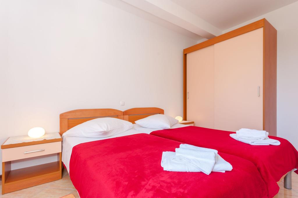 Opłata jest wliczone w cenę.Oferujemy 6 w pełni wyposażonych apartamentów i 1 pokój. Wszystkie jednostki noclegowe są klimatyzowane (pokój dzienny), posiadają telewizor LCD oraz bezpłatny dostęp do Internetu (WiFi). Apartamenty są nowocześnie urządzone, we wszystkich znajduje się w pełni wyposażona kuchnia z naczyniami do jedzenia i gotowania, czajnikiem, kuchenką mikrofalową, stołem z siedziskami oraz meblami na balkon lub taras. Pokój składa się z dwóch łóżek z możliwością dostawki. Posiada lodówkę i czajnik. Wychodzi na północ, bez balkonu. Pościel zmieniana jest co 7 dni, a ręczniki 2 razy w tygodniu. Drink powitalny i sprzątanie końcowe są wliczone w cenę. Parking znajduje się przed willą.
