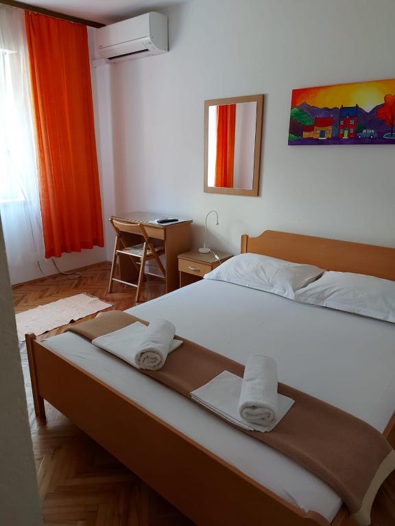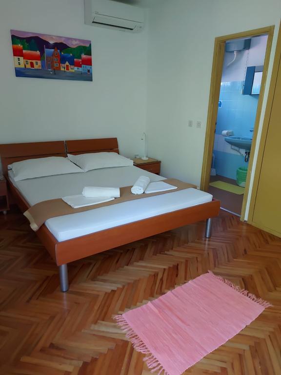 Dom do wynajęcia, pokoje Brela Šodan, znajdują się w części Breli zwanej Soline. Dom do wynajęcia posiada 5 pokoi, duży salon ok 25 m2, kuchnię ok 16 m2 oraz duży taras ok 40 m2. Wszystkie pokoje posiadają własną łazienkę, telewizor LED SAT 82 cm, klimatyzację i szybką sieć WIFI z nieograniczonym ruchem ulicznym. Cały dom można wynająć jako mieszkanie wielopokojowe z własną kuchnią, tarasem i salonem. Wszystkie pokoje posiadają podwójne łóżka, a dom może pomieścić 10 osób dorosłych. Można również wynająć pokój z łazienką i wykorzystać kuchnię do przygotowania śniadań i szybkich posiłków. W takim przypadku będziesz miał swój własny stolik na wspólnym tarasie z widokiem na morze. Brela Sobe Šodan znajduje się 50 metrów od pięknej żwirowej plaży, co widać na załączonych zdjęciach. Villa Šodan znajduje się 5-10 minut spacerem od centrum Breli i 10-15 minut spacerem od centrum Baška Voda. Supermarket znajduje się 15 metrów od domu. W salonie znajduje się telewizor z odbiornikiem satelitarnym. Aby uzyskać szczegółowe informacje, skontaktuj się z nami przez e-mail.