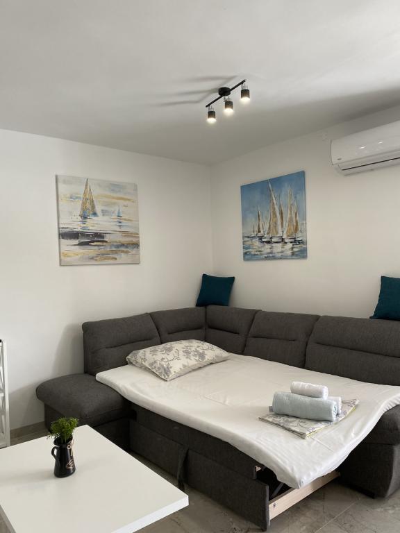 Nowocześnie wyposażone apartamenty Štica są idealnym wyborem na przyjemne rodzinne wakacje lub dla par szukających komfortowego noclegu w pobliżu plaży. Oferujemy zakwaterowanie w bezpośrednim sąsiedztwie mostu Pelješko. Apartamenty posiadają dużą sypialnię, część dzienną, w której znajduje się w pełni wyposażona kuchnia, stół, krzesła i rozkładaną sofę, łazienkę oraz przestronny taras. Apartamenty mają widok na morze.