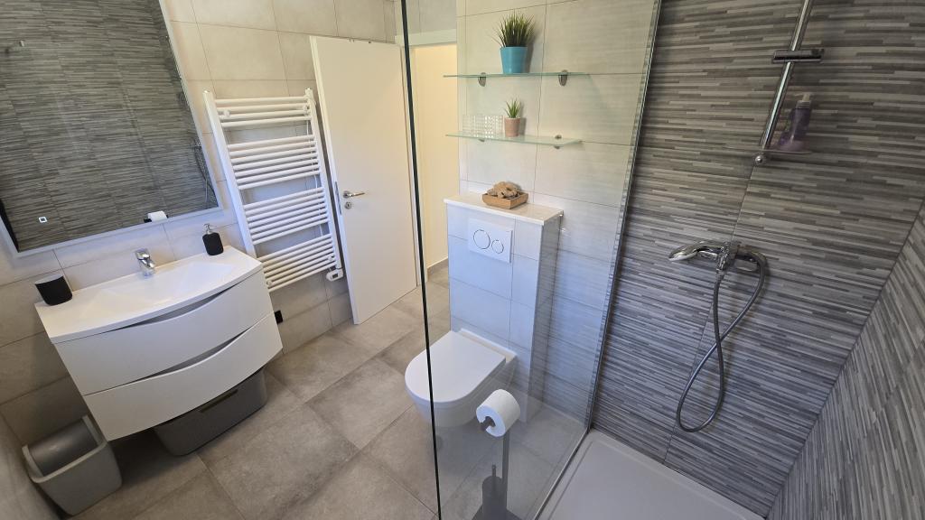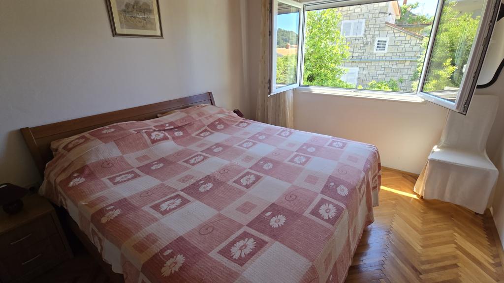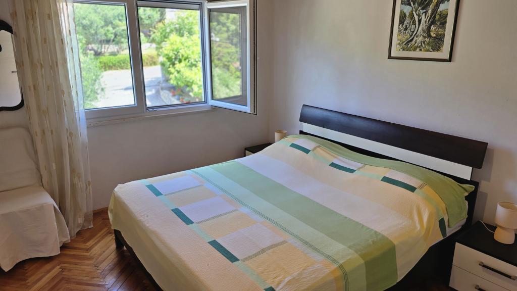 Apartament Antea położony jest w spokojnej części zatoki Brna, idealnej dla rodzin z dziećmi, zaledwie 40 metrów od plaży. Apartament znajduje się na 1. piętrze domu i jest w pełni wyposażony. Apartament posiada 3 sypialnie (łącznie 6 łóżek), kuchnię z jadalnią, salon o powierzchni 27 m² oraz 2 łazienki (w tym jedną z pralką). Apartament posiada 4 klimatyzatory. Kuchnia wyposażona jest w: dużą lodówko-zamrażarkę, piekarnik elektryczny, kuchenkę mikrofalową, ekspres do kawy, czajnik i zmywarkę. Z apartamentu roztacza się piękny widok na morze (łącznie 2 tarasy). Dom posiada część zewnętrzną z kominkiem i grillem. Na zamkniętym dziedzińcu znajduje się również miejsce parkingowe (3 samochody).
