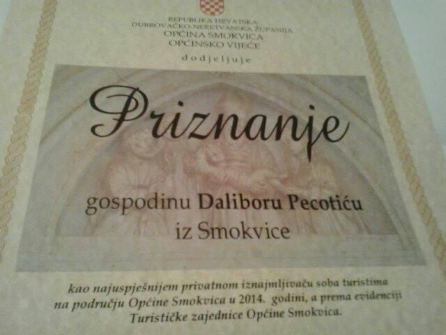 Dom w spokojnej okolicy, z dala od miejskiego zgiełku, położony nad samym morzem (10m). Prywatna plaża w zacisznym miejscu z drabinką do morza i murowanym nabrzeżem, z którego można skakać do wody! Woda czysta – bez problemu można obserwować dno i morskie stworzenia. Apartament, w którym mieszkaliśmy jest w pełni umeblowany: w sypialni ogromne małżeńskie łoże, w kuchni wszystkie potrzebne sprzęty i naczynia, telewizor w salonie, balkon z widokiem na morze. Wszystko nowe, zadbane i czyste. Do miasteczka około 10 minut na nogach. Znajduje się tam sklep (samoobsługowy) i kilka knajpek. Właściciele, u których mieszkaliśmy są bardzo mili i pomocni. Skorzystaliśmy z możliwości przepłynięcia się prywatną łódką po zatoczce (właściciel sam zaproponował taką atrakcję). Podczas pobytu jest także możliwość zamówienia posiłków, które sam przygotowuje właściciel. Serwuje na zamówienie najświeższe ryby i owoce morza, a większość składników pochodzi z jego prywatnego ogrodu…albo zostały przez niego złowione w morzu. Jest także producentem wyśmienitego wina białego i czerwonego, a jego plantacja winogron znajduje się w pobliskiej wsi. U Pana Dalibora i jego rodziny spędziliśmy niezapomniane chwile i na pewno tam wrócimy. POLECAMY