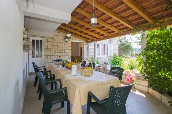 Bardzo przestronny apartament z 3 łazienkami i ogromnym tarasem, na którym mieliśmy 13 naraz. Przez okno sypialni przez cały dzień słuchaliśmy cykad, aw nocy szum morza, który jest dość blisko. Właściciele są bardzo przyjaźni, pomocni i zawsze dostępni. Odwiedź mały port w Brnie, a także Blato, Smokvice i piękną Vela Luka. Witamy w miejscowych i dziękuję!