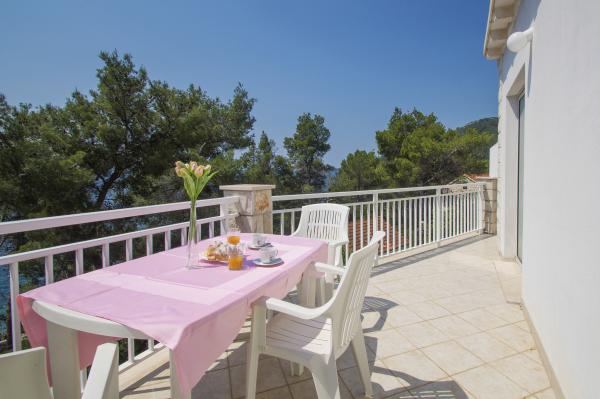 Bardzo dobre miejsce na odpoczynek. W apartamentach były moja rodzina i przyjaciele, i wynajęliśmy wszystkie trzy apartamenty. Byliśmy bardzo zadowoleni z obsługi i gospodarzy. Kiedy dotarliśmy do mieszkania gospodarze mają dać nam drink powitalny i oferowanych smaczne ciasto. W każdym apartamencie zostaliśmy przywitani przez litr wina i soku. Później kupiliśmy od gospodarzy bardzo dobre wina i brandy i bardzo smaczne, domowe marmolady z figami. Byliśmy w mieszkaniu na koniec sezonu, na początku września, więc nie było tłumu na plaży, w restauracjach, w sklepach ... Apartamenty znajdują się blisko lasu i tak spokojnie i cicho, a kiedy spać z niektórych pokoje można usłyszeć na morze. Apartamenty są w pełni wyposażone, czyste i zadbane. W dużym mieszkaniu dla 8 osób każdy pokój ma własną łazienkę, która jest świetna. Gospodarze mają kilka razy przygotował bardzo smaczny obiad. Plaża i morze jest blisko apartamentów, więc często chodził na plażę i do mieszkania. Morze jest czyste, tylko pod domem, na początku mieliśmy pewne problemy, ponieważ nie ma schodów, aby wejść i wyjść z morza, ale szybko opanował technikę. Zwiedziliśmy całą wyspę, jesteśmy szczególnie zachwyciła miasto Korcula. Miasto Korcula jest piękne, ale również bardzo drogie. Pod koniec wakacji nie naszych gospodarzy dał każdej rodziny mały prezent, małą butelkę brandy i lawendy, super pamiątka :) Jest to bardzo dobre miejsce na wakacje !!!