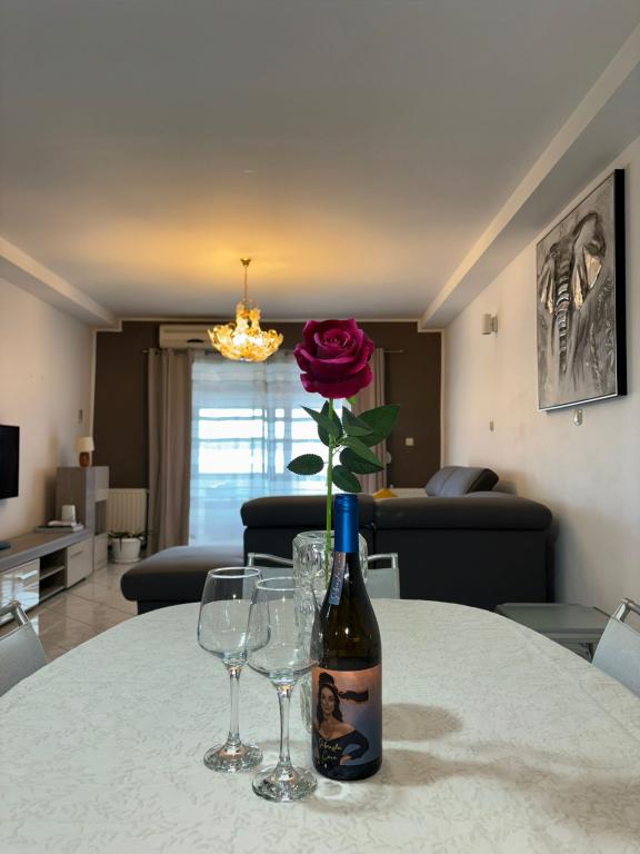 W pełni wyposażony apartament z widokiem na morze. Na samej plaży, która znajduje się po drugiej stronie ulicy, znajduje się park dla dzieci, a główna plaża miejska, Rezalište, oddalona jest od apartamentu o 1 km. Sklep spożywczy 500 m, w promieniu 5 km wszystko łącznie z centrum handlowym. Goście ze zwierzętami (psy do 7 kg) są akceptowani. Do Państwa dyspozycji jest parking na podwórzu domu na jeden samochód (wliczony w cenę) i miejsce do cumowania łodzi.
